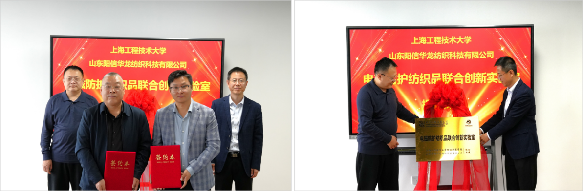 2025年11月5日上午,我校纺织服装学院与山东阳信华龙纺织科技有限公司共建的“电磁防护纺织品联合创新实验室”签约暨揭牌仪式在松江校区行政楼隆重举行。此次合作标志着双方在产学研深度融合与协同攻关上迈出了坚实一步,开启了校企合作的新篇章。
