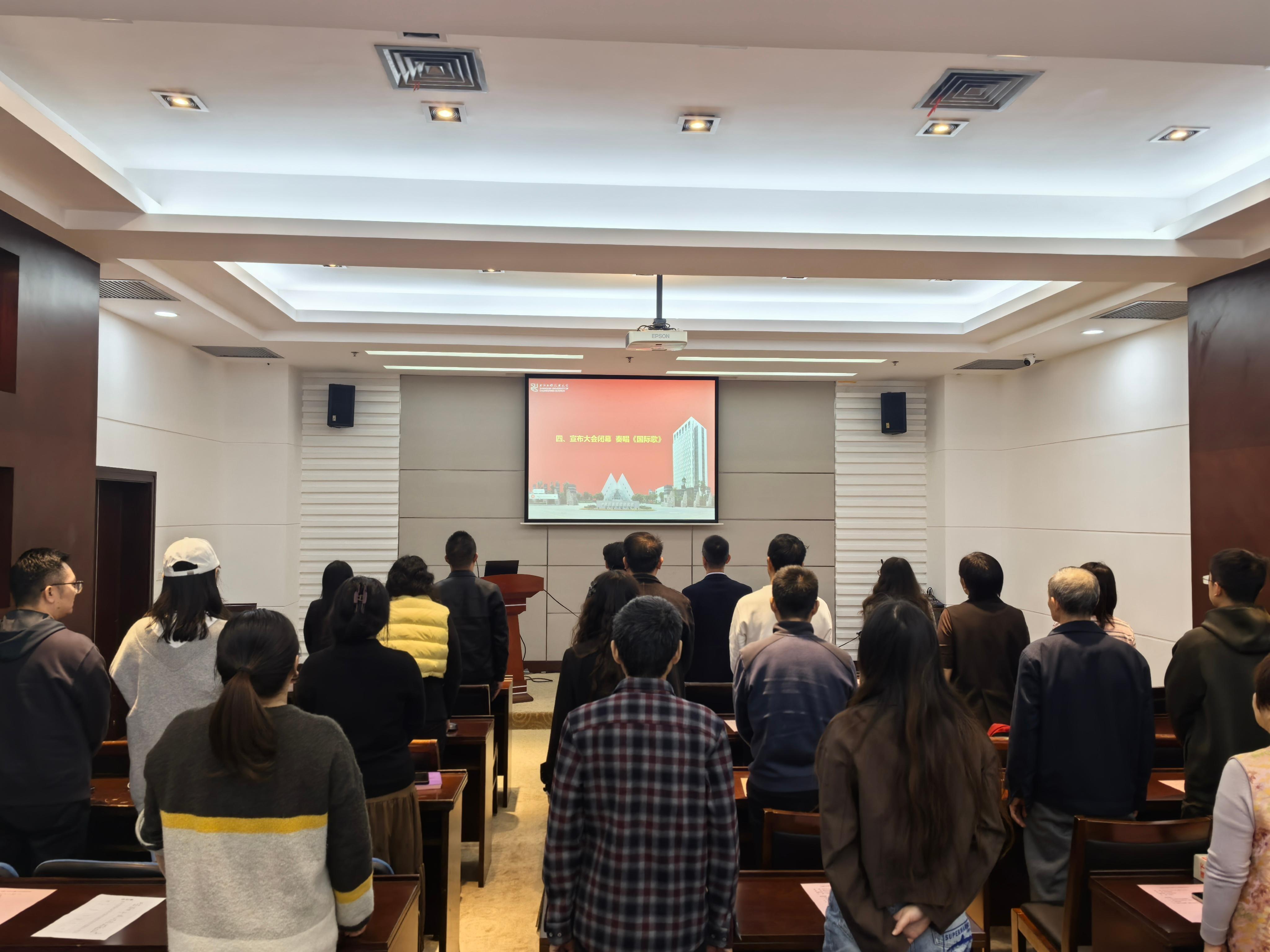 学院党委书记朱君璇同志作了总结讲话,号召全体教职工要以教代会为契机,在学校党委的领导下,以习近平新时代中国特色社会主义思想为引领,围绕“三旋翼”交叉融合驱动的学科发展路径,想在一起,干在一起,奋力推进学院各项事业高质量发展。最后在庄严的《国际歌》歌声中,纺织服装学院五届三次教代会暨工代会顺利闭幕。
