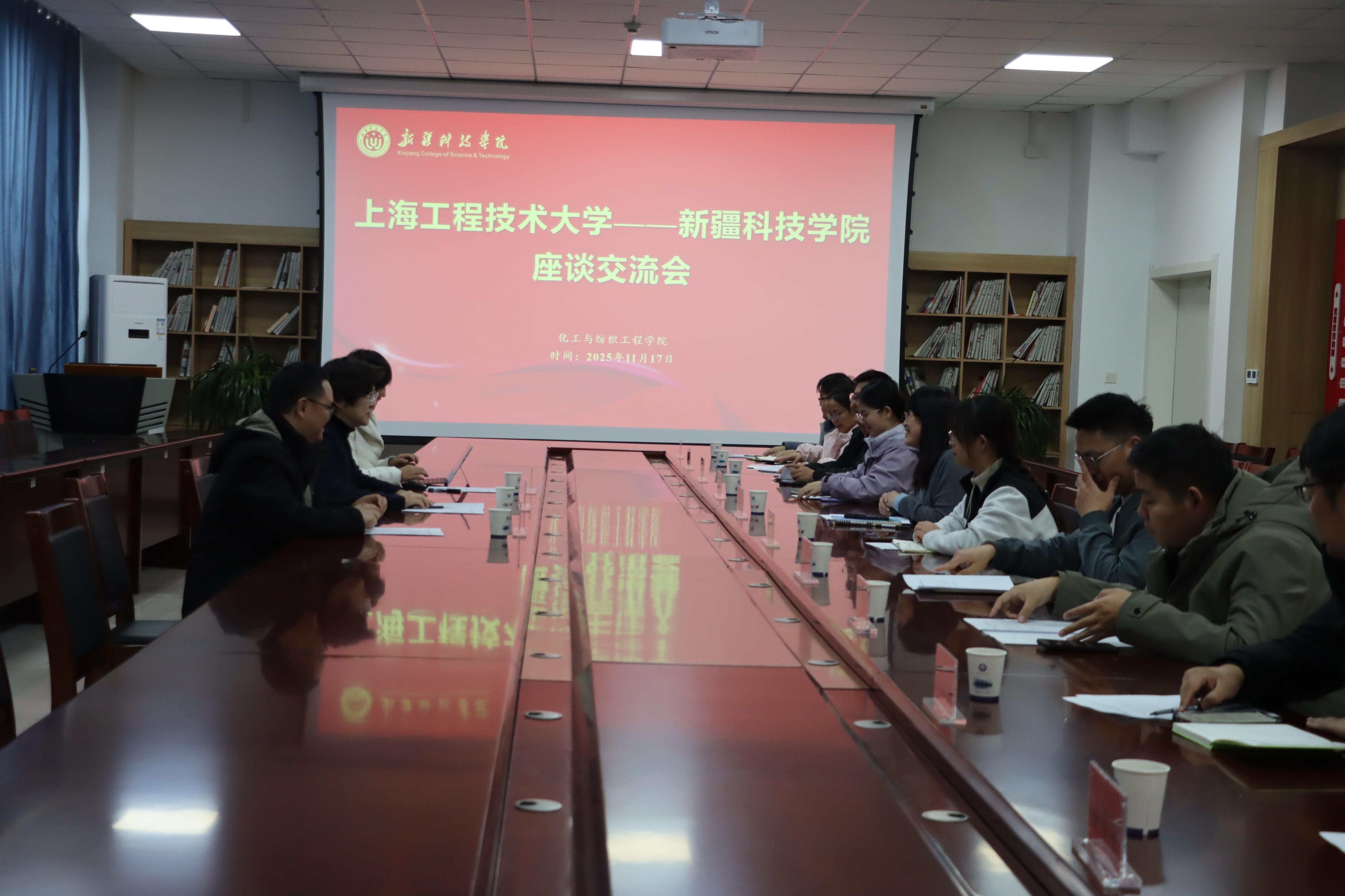 代表团全程参与工作会议,随后与新疆科技学院化工与纺织工程学院领导、教师代表举行专题座谈会。朱君璇书记指出,学院党委始终坚持精准对接需求、长效深化合作,聚焦学科建设、人才培养、科研创新等领域,积极推进“东西互补、双向赋能、互利共赢”,让教育援疆有温度更有实效。双方围绕共建重点实验室、优化援疆小组团机制、深化教学科研合作、硕士生导师队伍建设开展深入交流,就课程资源共享、暑期实践项目、科研项目研究达成合作共识。代表团重点分享了纺织工程、非织造材料与工程等专业建设经验,展示了学院在产教融合与服务区域发展方面的实践成果。