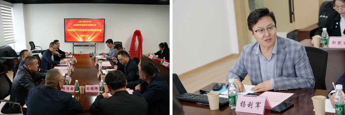 2025年11月5日上午,我校纺织服装学院与山东阳信华龙纺织科技有限公司共建的“电磁防护纺织品联合创新实验室”签约暨揭牌仪式在松江校区行政楼隆重举行。此次合作标志着双方在产学研深度融合与协同攻关上迈出了坚实一步,开启了校企合作的新篇章。