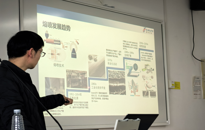 2025年11月20日,上海工程技术大学纺织服装学院“企业家进课堂”系列活动迎来新一轮精彩课程。学院特邀校企合作单位——上海精发实业有限公司的付小栓经理,再次走进校园,为非织造材料与工程专业0743班的同学们带来了一场题为“熔入细微,喷礴而出”的深度专题讲座。