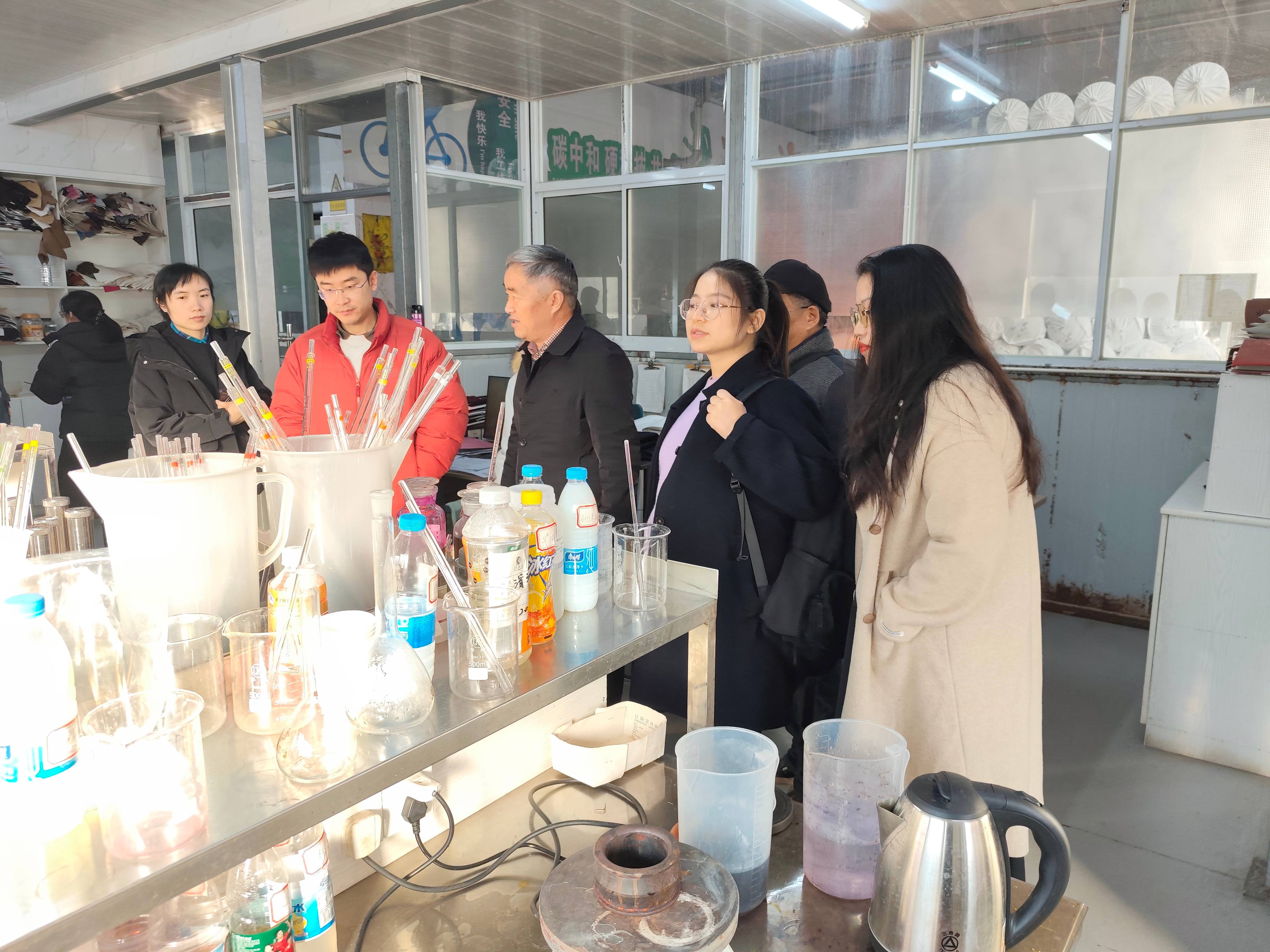 江阴笛科隆是专业从事高端毛纺面料研发与生产的企业,在染整工艺与技术创新方面颇具特色。在公司相关负责人的陪同下,教师们深入车间、实验室及品质检测中心,重点考察了其核心工艺流程、环保化料应用、废水处理设施及新产品开发情况。双方就毛纺纺织行业普遍关注的技术难题、清洁生产发展趋势、功能性整理技术等议题展开了深入而务实的探讨,并就未来在工艺优化、项目研发及学生实践教学等方面开展合作的可能性交换了意见。