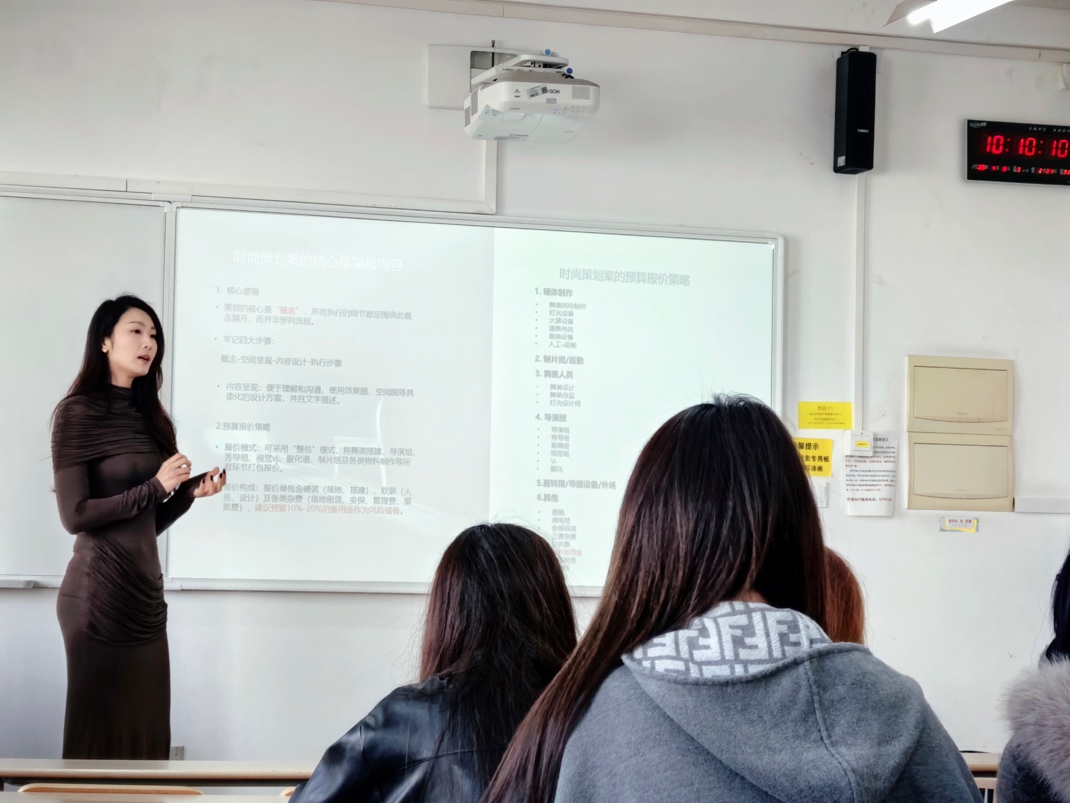 2026年4月8日上午,上海工程技术大学纺织服装学院《时装表演策划》课程开展“企业专家进课堂”活动,课程主讲教师冒绮邀请时尚秀导黄瑛瑛走进《时装表演策划》课堂,为表演专业2023级本科生做“时尚发布会策划与执行”专题讲座。