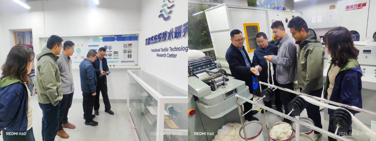 会后,来访一行参观了纺织行业人体工效与功能服装重点实验室、功能性纺织技术研究中心,了解科研平台建设、技术创新与成果转化情况。此次联组学习增进两院交流,为后续深度合作奠定基础。