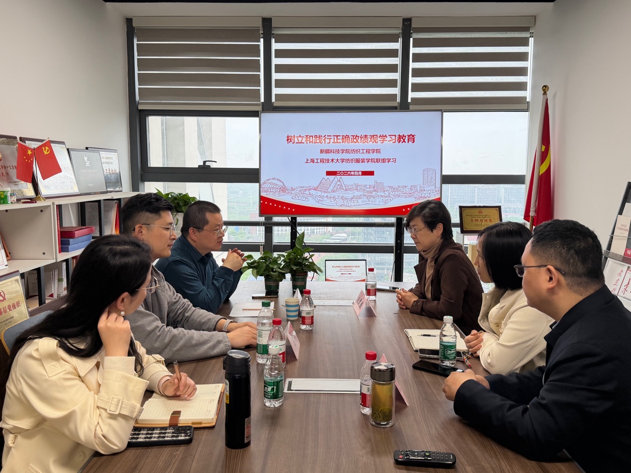 4月13日,新疆科技学院纺织工程学院一行与上海工程技术大学纺织服装学院开展树立和践行正确政绩观学习教育专题联组学习。