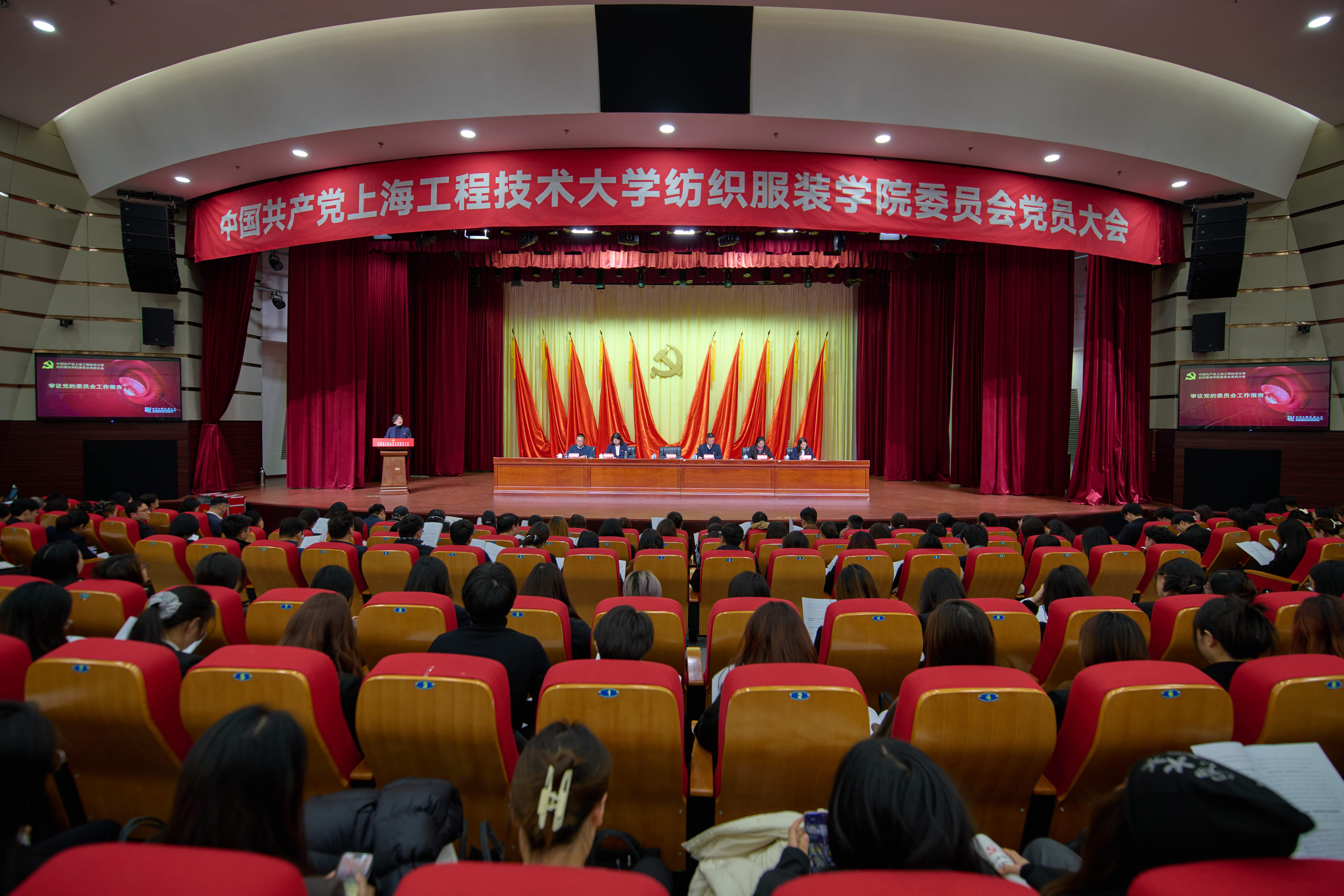 12月19日,中国共产党上海工程技术大学纺织服装学院委员会党员大会在志宏堂举行。校党委常委、副校长许开宇、纺织服装学院党政领导班子及全体师生正式党员参会。
