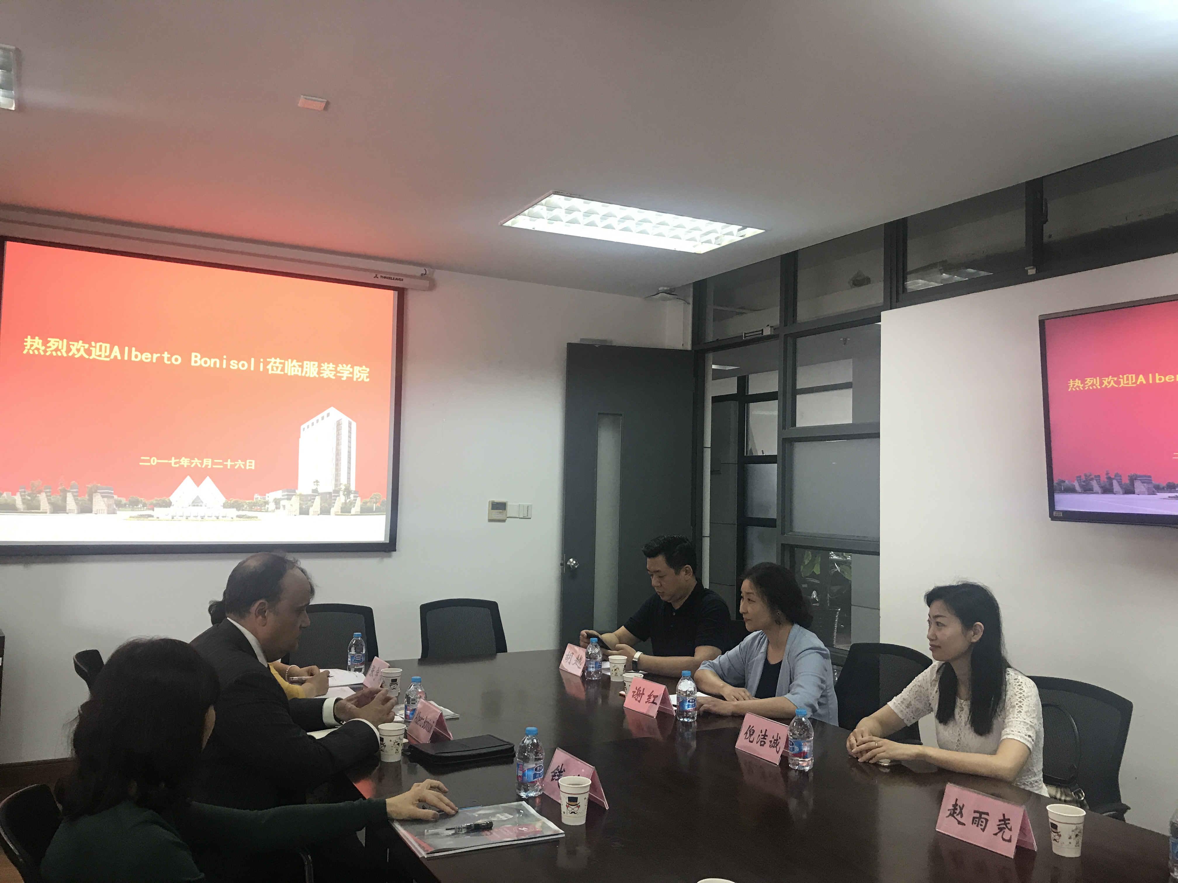 6月26日,意大利米兰新美术学院Alberto Bonisoli教授一行来到服装学院进行深入访问与交流,服装学院院长谢红、副院长胡越等4位老师参与了接待。