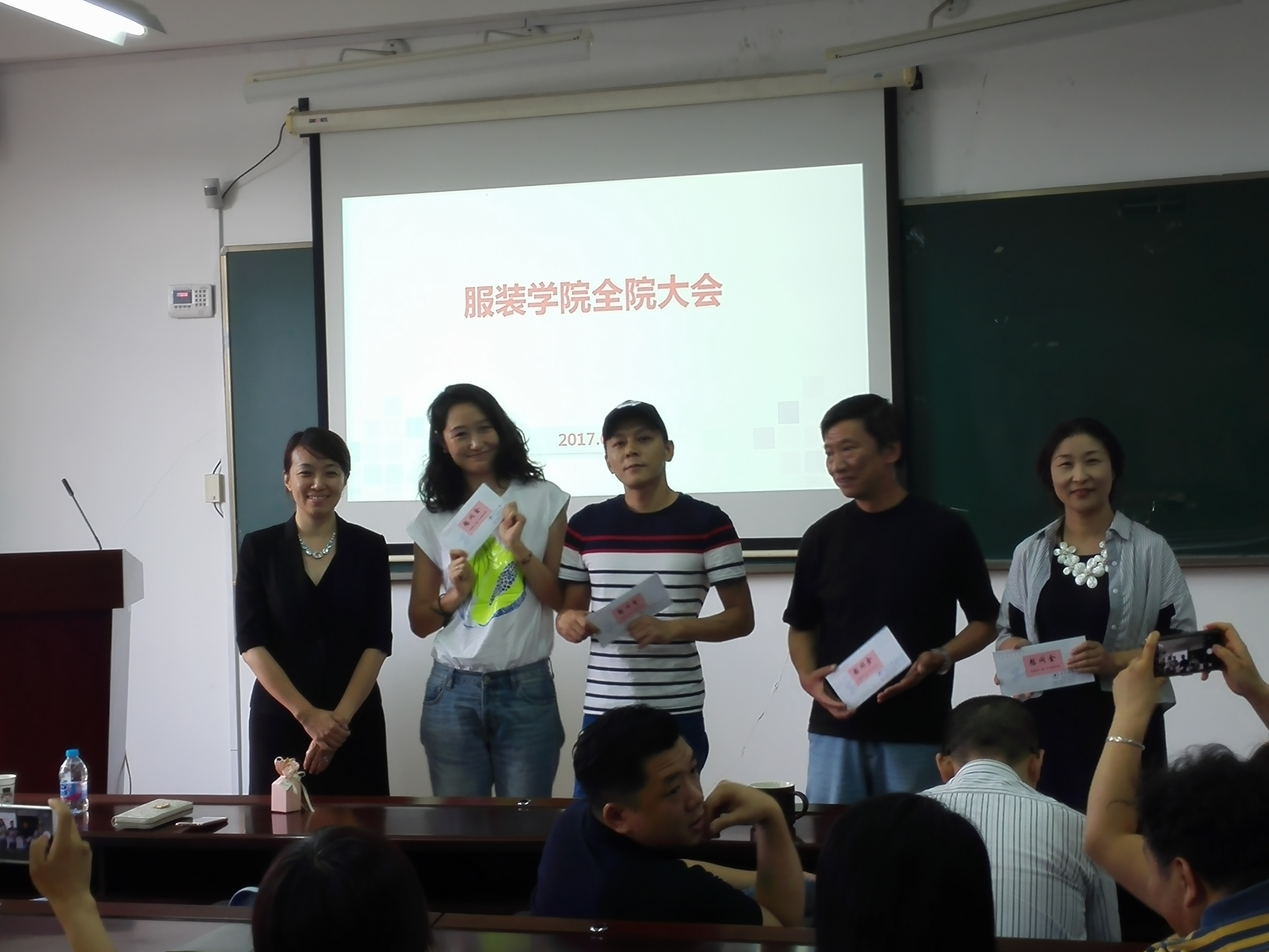 2017年7月4日下午14:00服装学院在艺术楼C310召开全院大会,对上半年度全院工作进行总结,学院全体教师参会,会议由服装学院院长谢红主持。