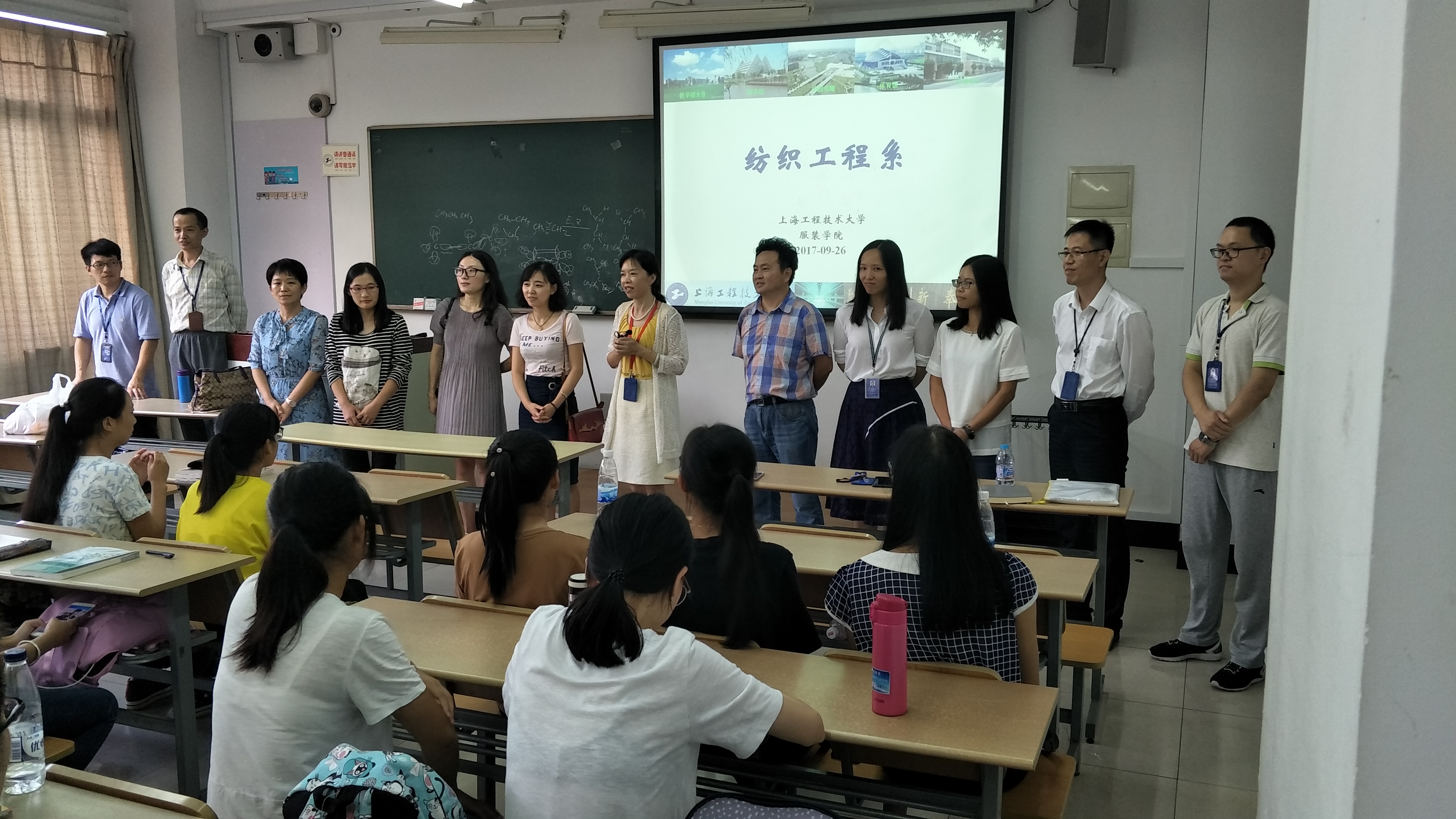2017年9月26日,服装学院纺织工程系举行了本科新生与导师见面会,系主任刘晓霞教授、副系主任王黎明教授、教学团队带头人沈勇教授和辛斌杰教授等纺织工程系全体教师参加了此次导师见面会。