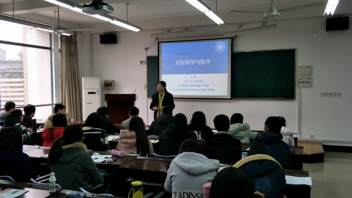 2017年12月2日上午,应服装学院邀请,东华大学王璐教授来我校艺术楼C310举行题为“纺织科学与医学”的学术科普讲座,讲座由服装学院辛斌杰教授主持,学院近40名本科生及部分青年教师参加讲座。
