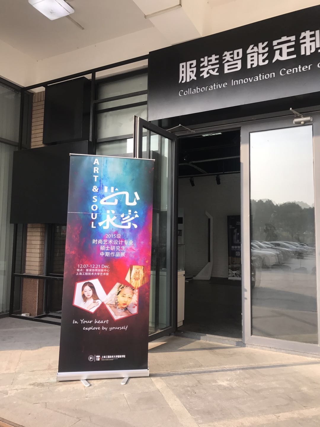 2017年12月7日,2015级服装学院时尚艺术设计专业硕士研究生中期作品展在上海工程技术大学艺术楼服装协同创新中心举办。参展作品分为服装类、饰品类等,主题为“艺心求索”。出席本次活动的有服装学院院长谢红,副院长胡越,中法埃菲时装设计师学院副院长徐蓉蓉以及相关老师和研究生。胡越老师就研究生作品的艺术风格表现手法,材质的运用等做了详细的点评和讲解,并对研究生的手工扎染、编织等工艺表达了欣赏之情鼓励学生们创作出更多更好的作品。