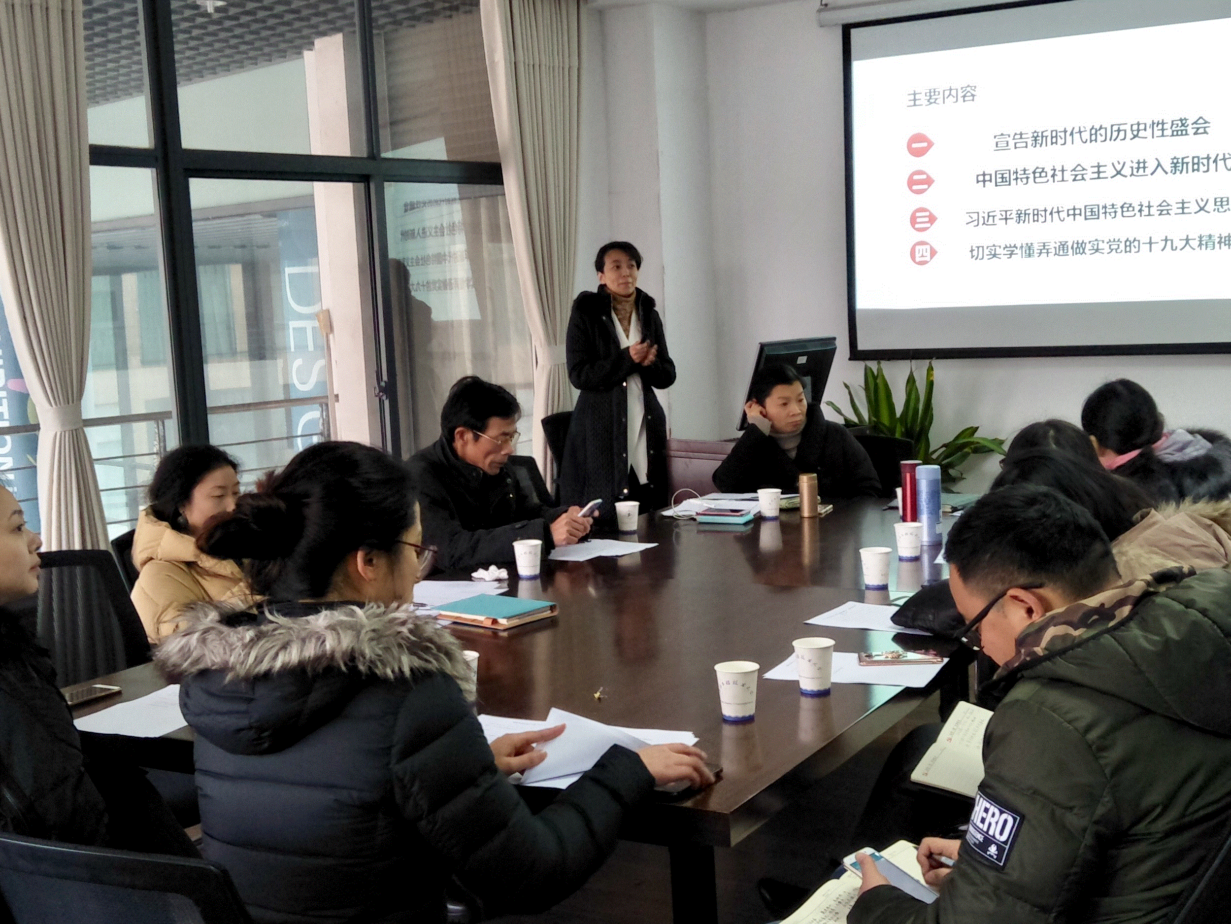 首先,袁蓉书记为大家做十九大精神学习的党课,以《面向新时代的政治宣言和行动纲领》为题,从宣告新时代的历史性盛会、中国特色社会主义进入新时代、习近平新时代中国特色社会主义思想等方面详细解读了党的十九大报告,深刻阐释了党的十九大提出的一系列重要思想、重要观点、重大论断、重大举措,要求大家切实学懂、弄通、做实党的十九大精神。
