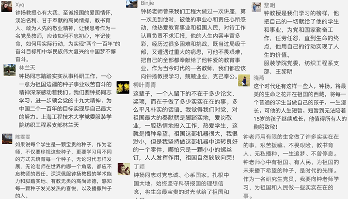 服装学院党委积极响应市教委、校党委关于深入向钟扬同志学习的相关要求,把学习钟扬同志先进事迹作为推动“两学一做”学习教育“不忘初心、牢记使命”主题教育的重要内容,组织各党支部召开主题组织生活会,教育引导广大党员、干部、教师以钟扬同志为榜样,牢记初心使命、更好履职担当。广大师生党员自主学习先进事迹、交流学习心得、撰写学习体会,兴起了向钟扬同志学习的热潮。