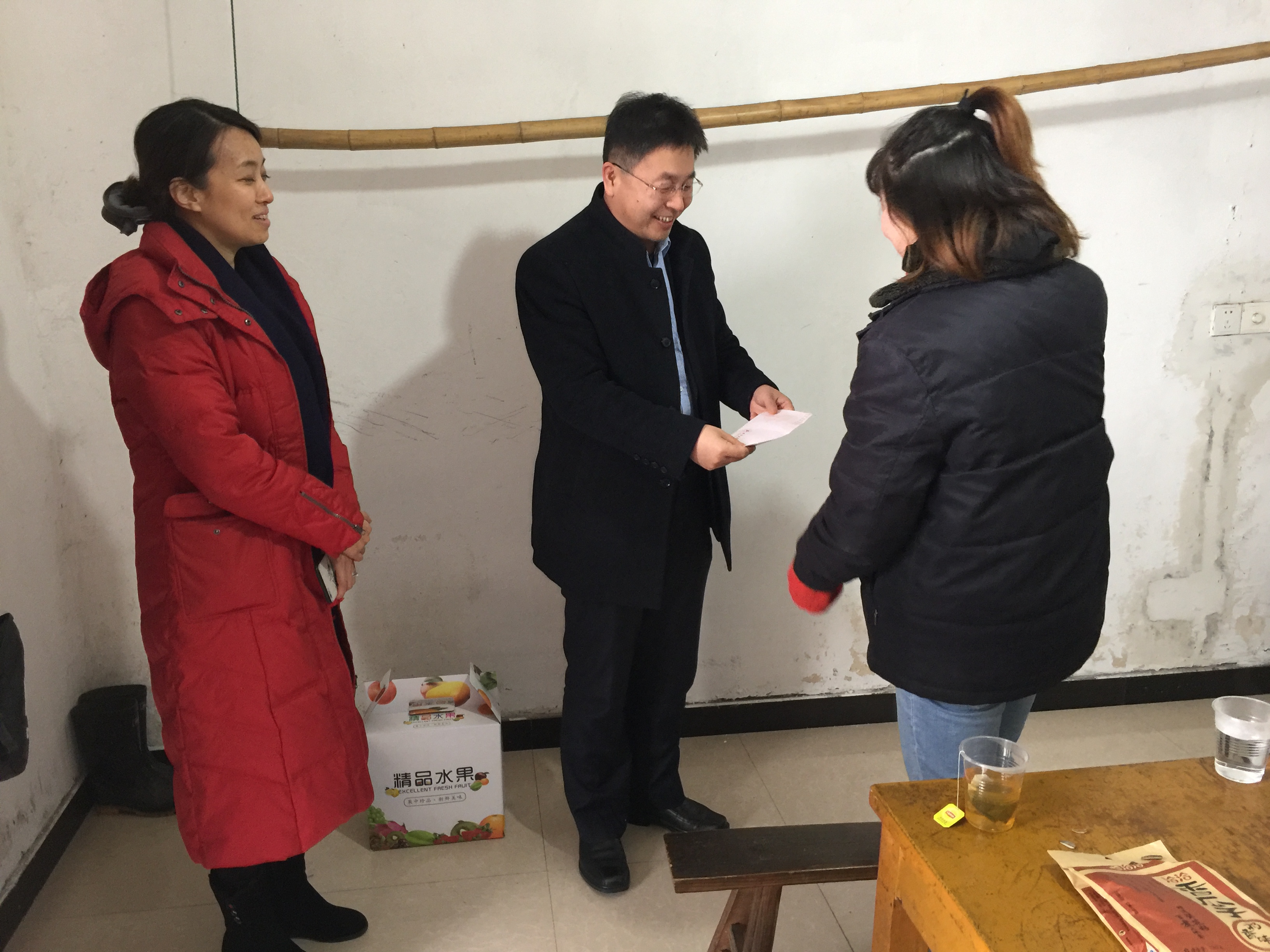 在新春佳节即将到来之际,为了让家庭困难学生过上一个欢乐、祥和的春节,及时将学校的温暖和新年祝福送达。1月 31 日下午,副校长王岩松,服装学院党委书记袁蓉、校办副主任施明、学生处副处长李扬和服装学院学生工作办公室主任陈小琼一行,深入到上海市松江区泖港镇田黄村,走访慰问服装学院16级服装与服饰设计专业困难生,为他们送上慰问金和慰问品。