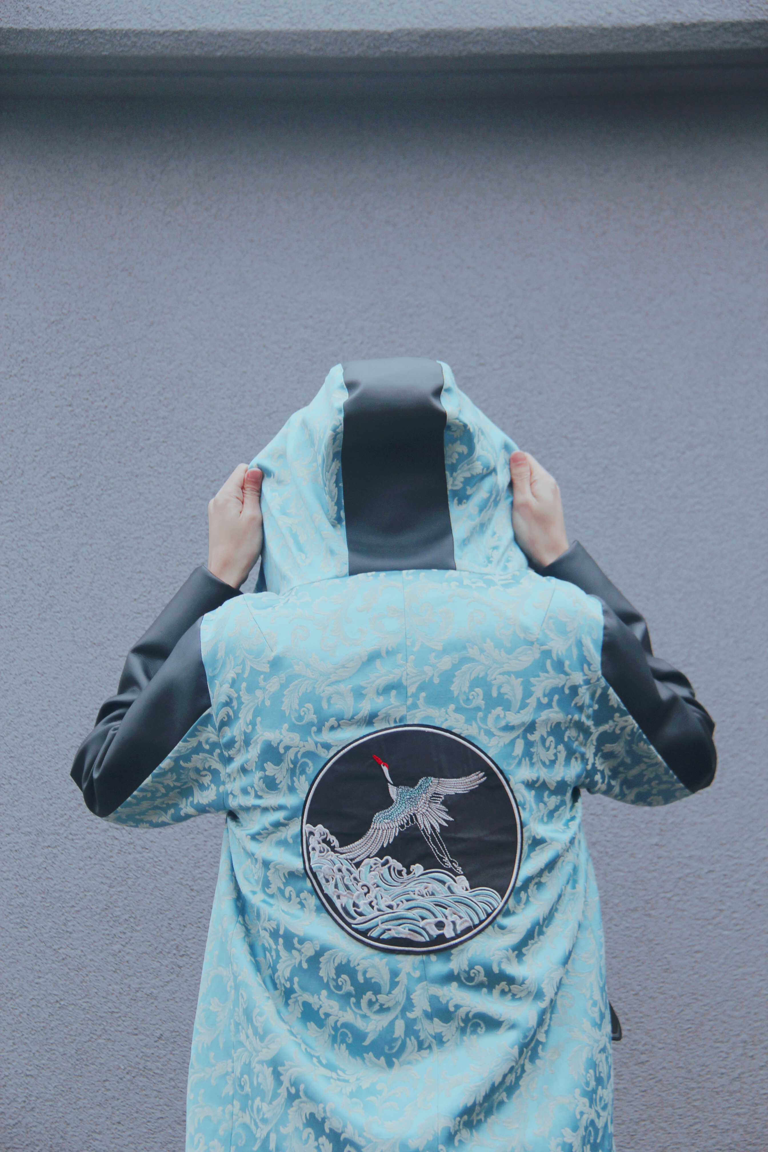 设计作品《porcelain》,其灵感来源于“瓷器”,通过结合中国古典的瓷器文化,利用现代的服用面料搭配出精致的产品。里衬采用真丝面料,舒适大气;外观主要面料采用纯皮与刺绣面料拼接,简单大气。是极具可穿性的春夏时尚大衣,作品更加体现了传统文化与现代艺术的发展与融合。