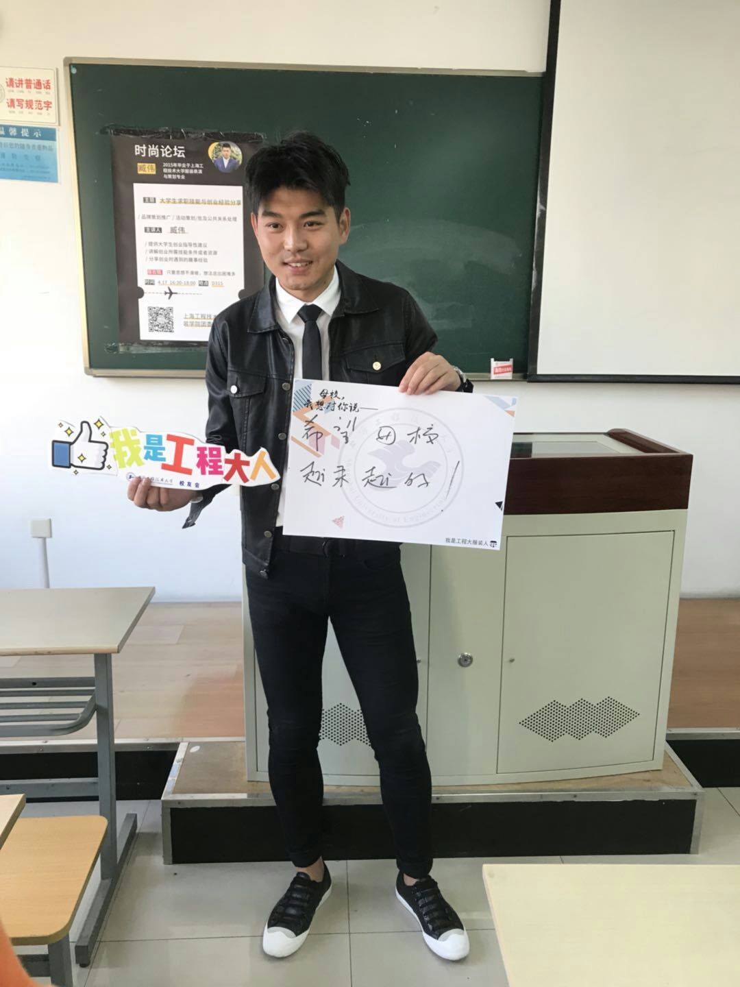 2018年4月17下午16:30,服装学院校园时尚节之“时尚论坛”在教学楼D315圆满举行。此次论坛以“适合自己的才是最好的——大学生求职技能与创业经验分享”为主题,邀请服装学院2015届校友臧伟作为主讲嘉宾,与在校学生们分享了他对大学生求职技能的理解以及自身的创业历程。