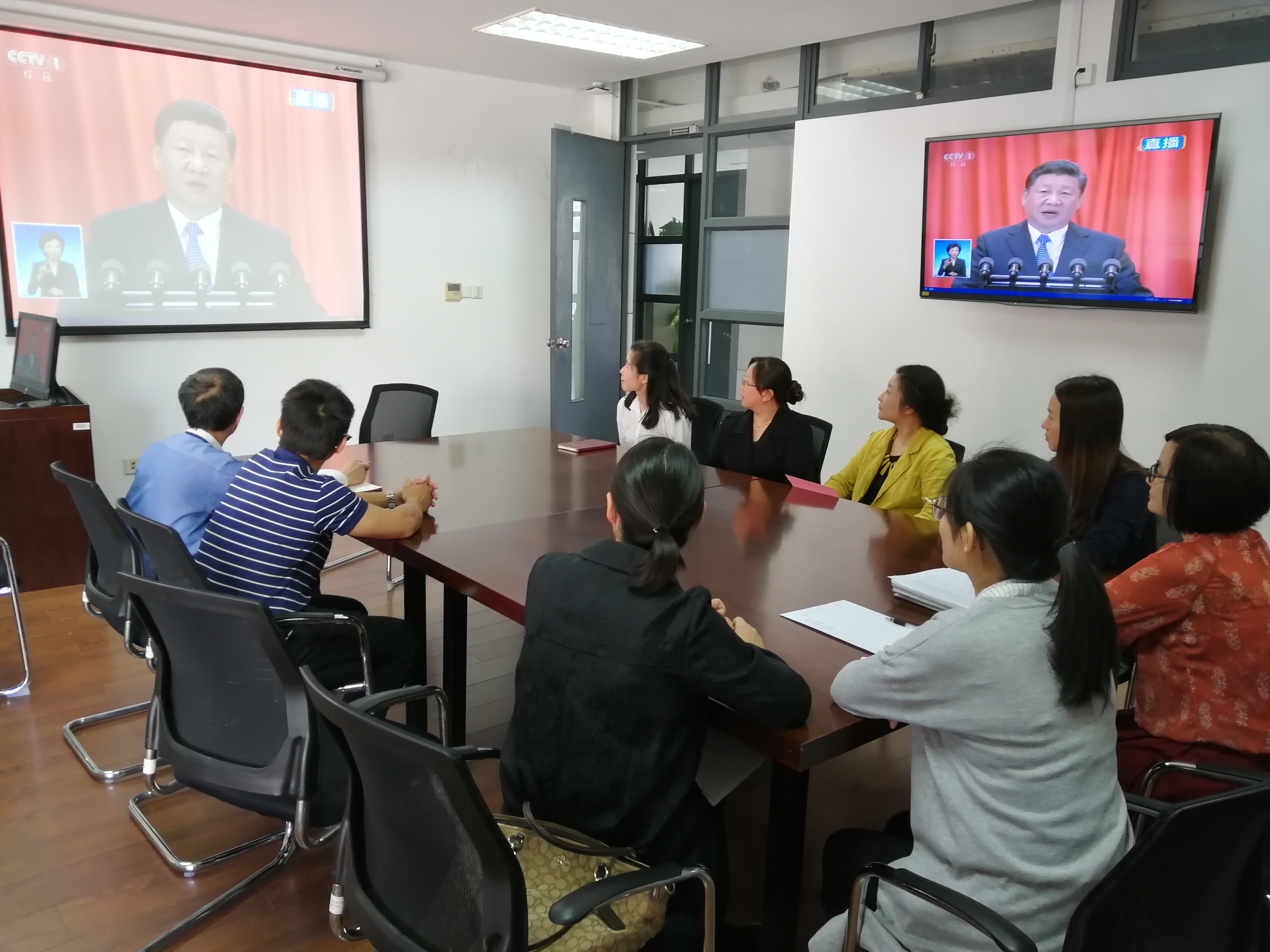 上午10时,纪念马克思诞辰200周年大会在人民大会堂举行。中共中央总书记、国家主席、中央军委主席习近平出席大会并发表重要讲话。服装学院党委组织党员集中收看直播盛况,服装学院党委副书记、服装学院院长谢红,服装学院党委委员、服装学院副院长李艳梅及其它党员代表出席。