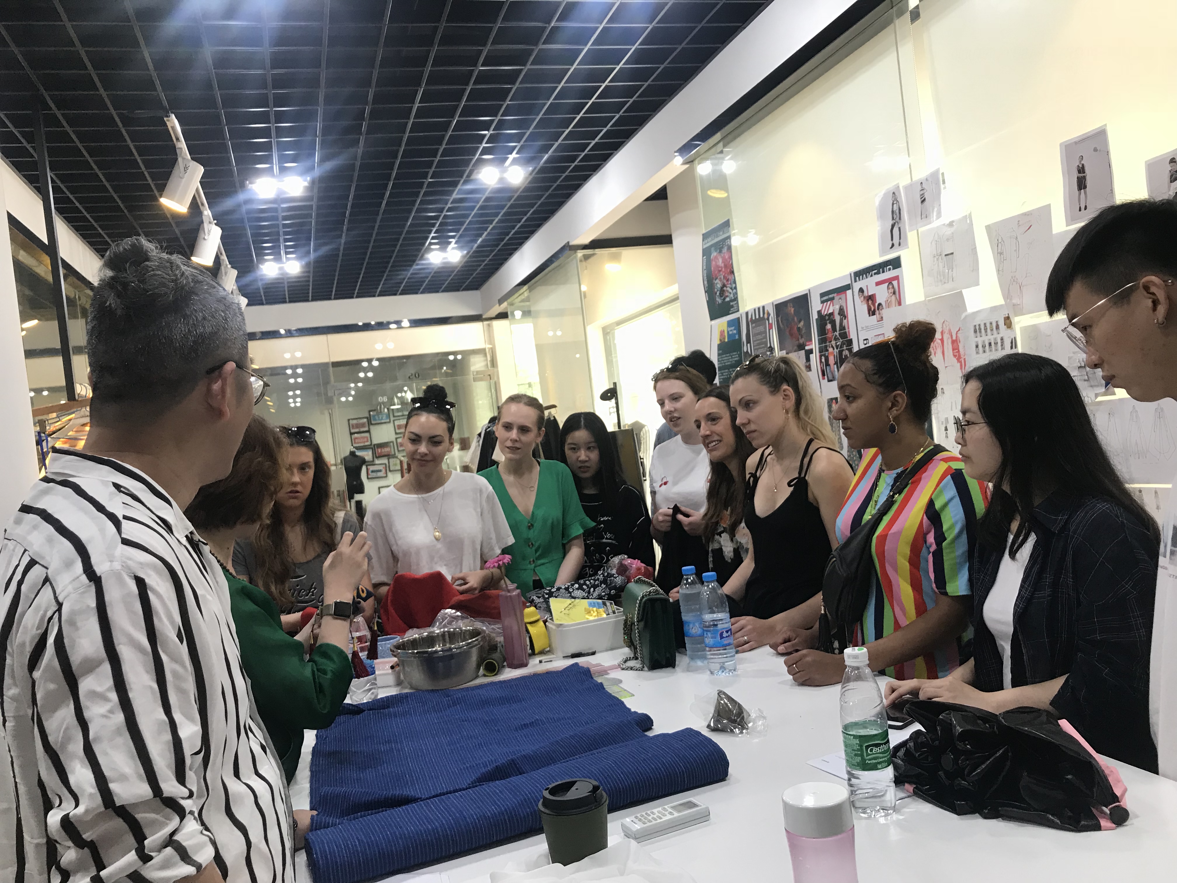 夏日的校园充满了生机勃勃与活力,利物浦摩尔大学师生代表团一行参观了服装学院相关实验室与学习工厂。为期一周的课程学习包括学习传统的服装手工艺制作,双方院校一起参加上海师范大学-“利物浦在上海日”的服装表演走秀,与服装学院的学生积极进行互动与交流。学习课程结束后,20余名位师生代表穿起了中国传统的服装-旗袍,穿梭在美丽的校园,阳光映衬着灿烂的笑容,也引起了其他同学的瞩目,形成了校园里一道亮丽的风景线。