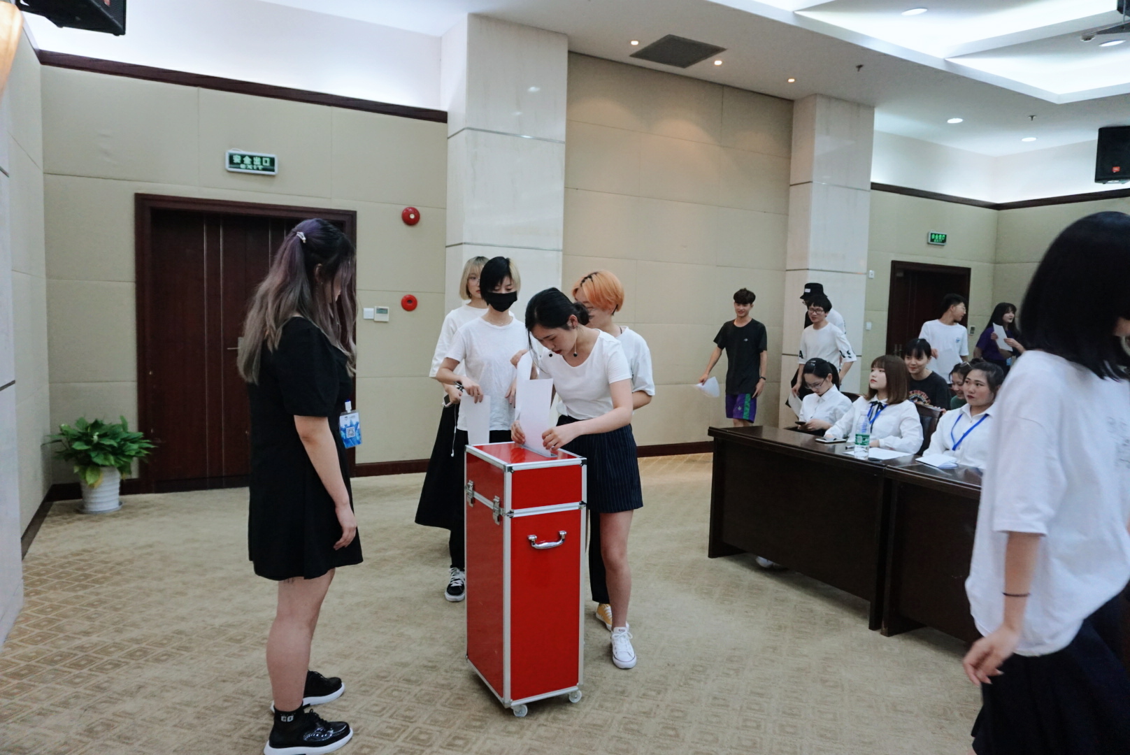 大会听取了服装学院第一次学生代表大会筹备工作报告以及学生会工作报告,审议通过了选举办法、监票人和计票人名单,最后全体学生代表投下了庄严的一票,选举产生了第一届学生会主席、副主席。在青春洋溢的团歌声中,上海工程技术大学服装学院第一次学生代表大会顺利闭幕。