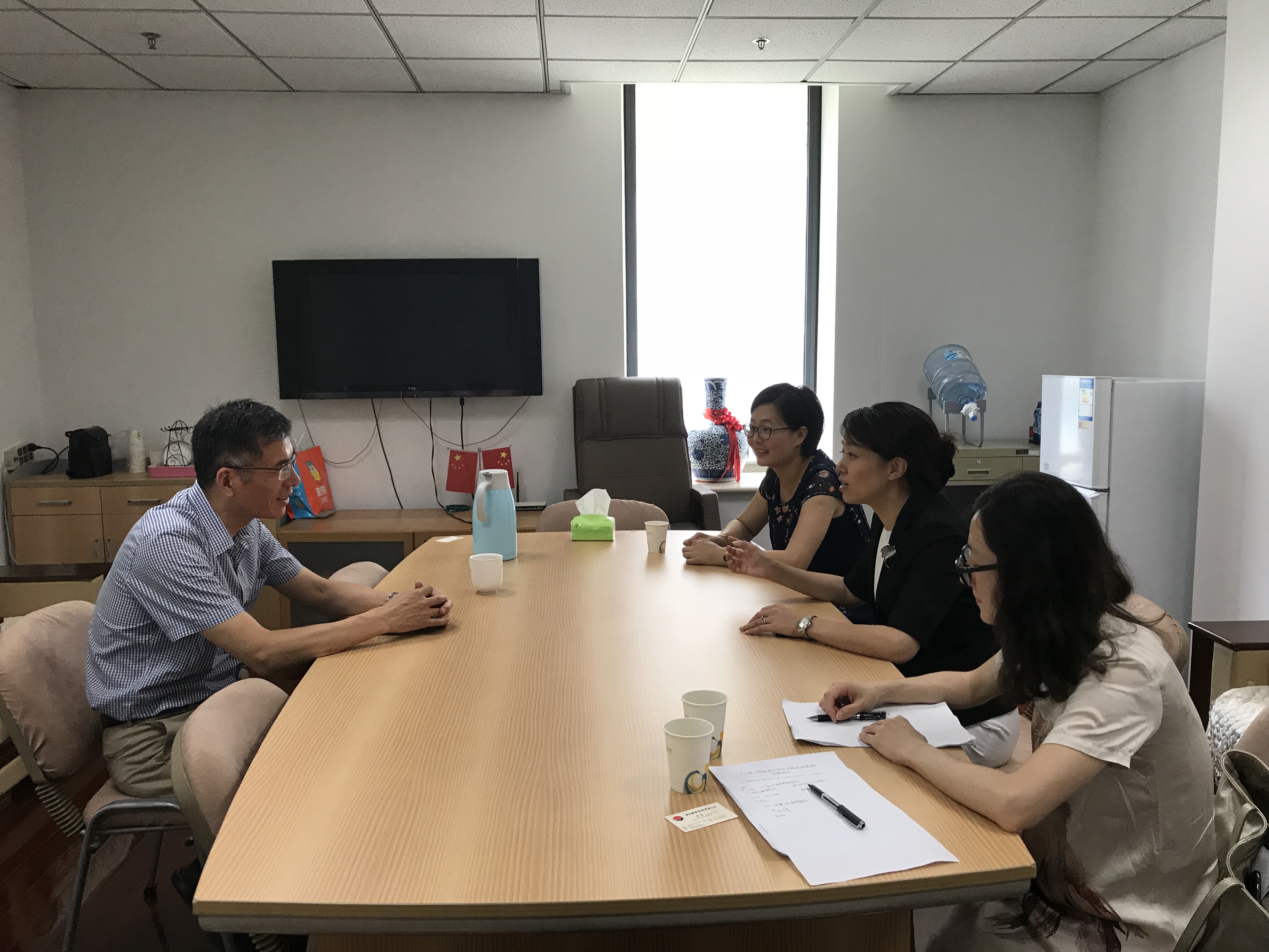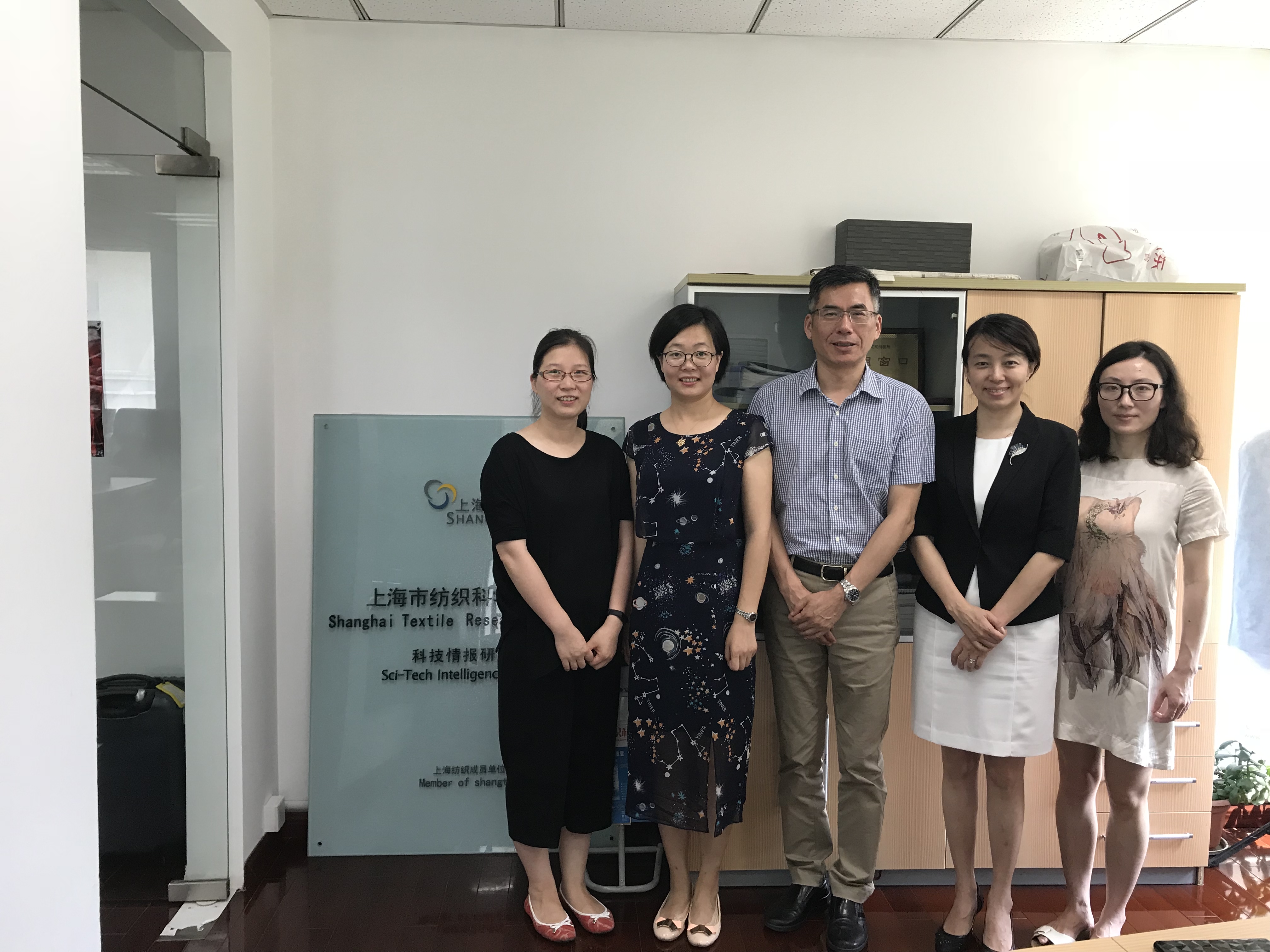 6月26日下午,服装学院党委书记袁蓉、副书记谢志霞、学院纺织工程系党支部书记许颖琦、以及校友工作辅导员沈智莉来到上海纺织科学研究院,拜访服装学院优秀校友李勇。