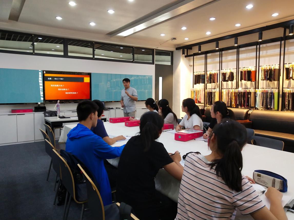 最后,研究生小导师们各自带队负责进行了课题实验学习。海派旗袍组前往了教学楼旗袍传习工坊,在企业老师的悉心指导下认真学习了旗袍盘扣制作,从一针一线手缝布条到盘扣的造型变换,同学们体验到了盘扣对旗袍产生的美学影响,也更加了解了传统服饰文化的魅力。