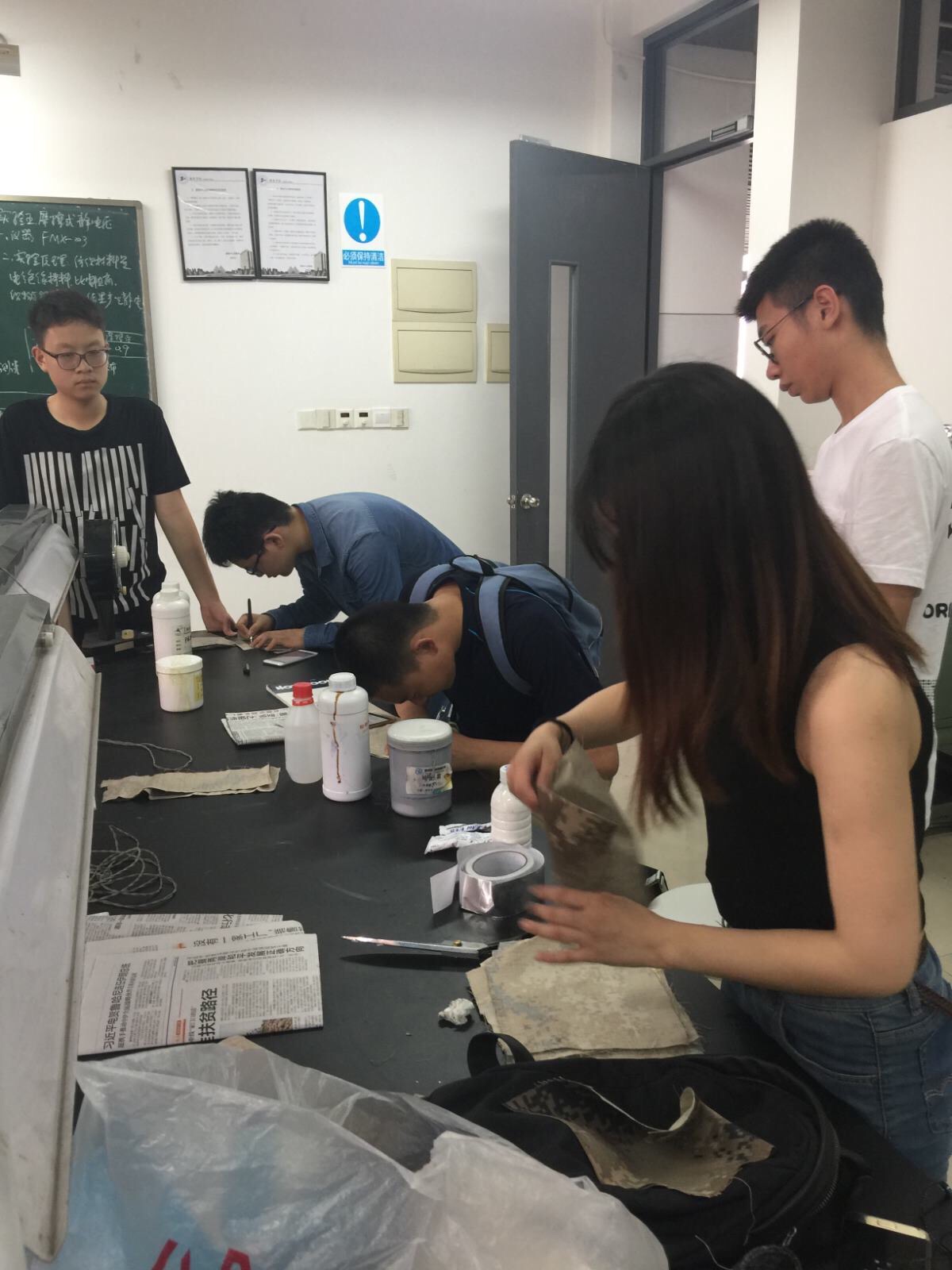 海派旗袍对现代服装的创意启示项目和服装智能定制项目在艺术楼C210进行了授课,授课教师为袁蓉老师和徐律老师;新型阻燃机器人防护面料的开发与研究项目,在许颖琦老师带领下,如火如荼的开展实验实践,此外还有研究生小导师们和部分学生家长到场。