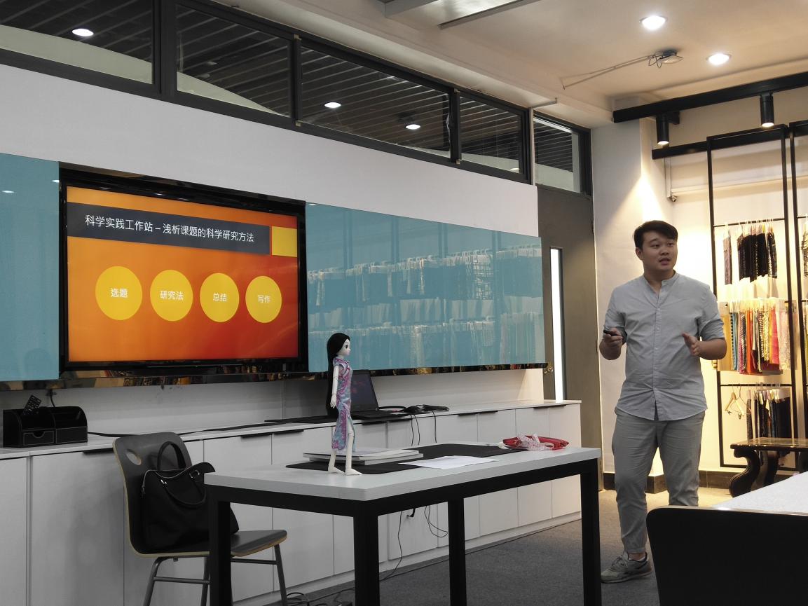 海派旗袍对现代服装的创意启示项目和服装智能定制项目在艺术楼C210进行了授课,授课教师为袁蓉老师和徐律老师;新型阻燃机器人防护面料的开发与研究项目,在许颖琦老师带领下,如火如荼的开展实验实践,此外还有研究生小导师们和部分学生家长到场。