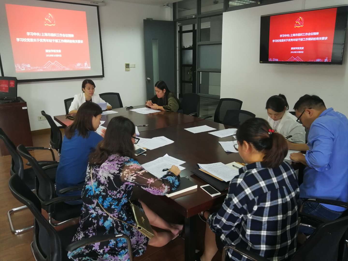 会上,袁蓉书记首先就全国和上海市组织工作会议精神做了解读,接着带领大家共同学习了学校党委关于优秀年轻干部工作调研的有关要求,最后对相关工作做了具体部署。