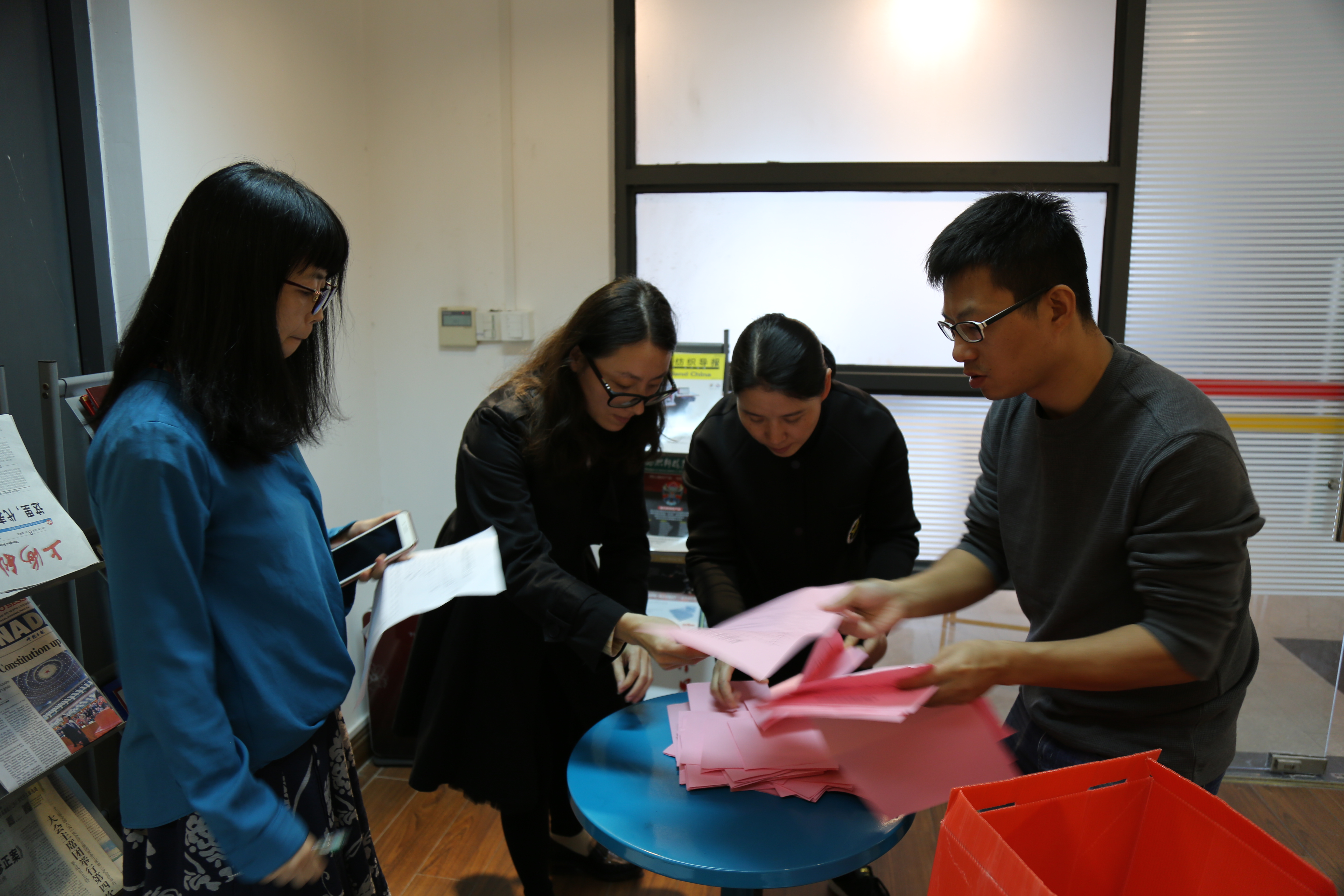 10月19日下午在艺术楼C310服装学院隆重召开全体教师代表大会,选举校工代会代表。同日上午在仙霞路校区中法时装设计师学院同步召开换届选举事宜。会议由院党委副书记谢志霞老师主持,院党委书记袁蓉老师、院长谢红老师、院工会主席王黎明老师出席了本次会议。会议在国歌声中隆重召开,会议按既定议程,由主持人宣读大会选举办法,推选并通过监票人、计票人人选,逐一介绍代表候选人情况,填写选票,并按指定顺序进行投票,监、计票人开箱清点选票,经过清点收回的选票和计票,由监票人丛珊老师向大会报告每位候选人的得票情况,主持人宣布选举结果,最终服装学院党委顺利选出校工代会正式代表9名。整个选举过程规范有序,学院在院党委的领导下,以高度负责的精神、严谨细致的作风,圆满完成了换届选举的工作任务。