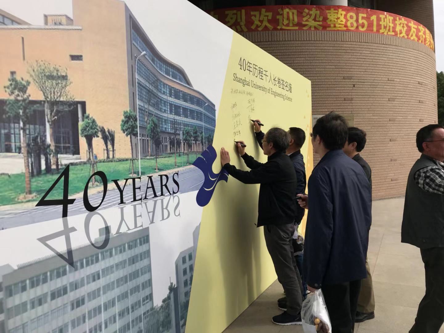 活动当天,染整851班在新村路校区当年上课教室“重返课堂”,在松江校区校园内领略了学校环境的广阔和优美,在服装协同创新中心体验了服装智能定制的高端前沿,在40年历程签名墙上留下了美好的祝福和签名。纪念活动很短暂,但对母校的感情和祝福是长远的,让我们共同祝愿母校40周年:生日快乐!
