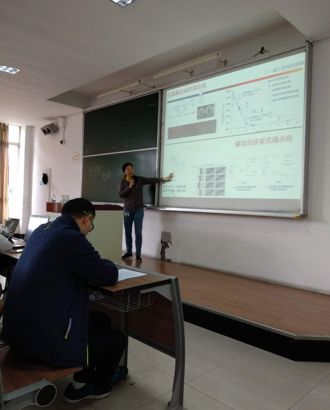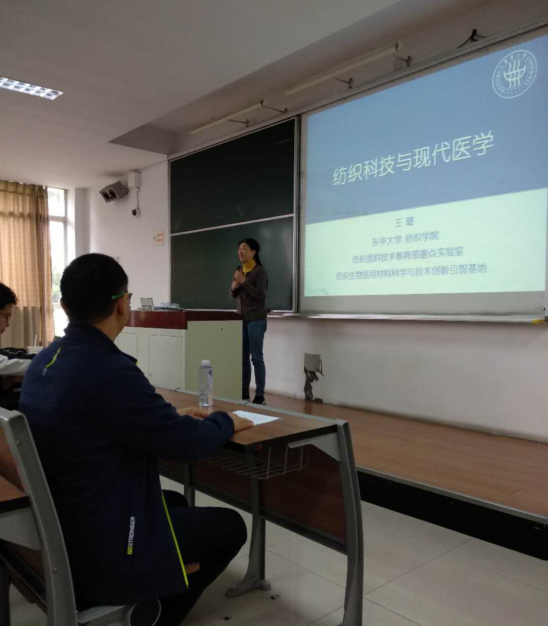 王教授90分钟的讲座生动有趣,内容丰富,态度和蔼。以实物展示和提问的形式,积极与学生互动,让纺织专业的本科生在轻松活跃的氛围中对纺织科学在现代医学领域的应用有了一个全面的了解,更对传统纺织科学有了一个全新的认识。此外,王教授轻松有趣的授课风格、认真的授课态度以及严谨的科学素养值得我们每一位青年教师学习。