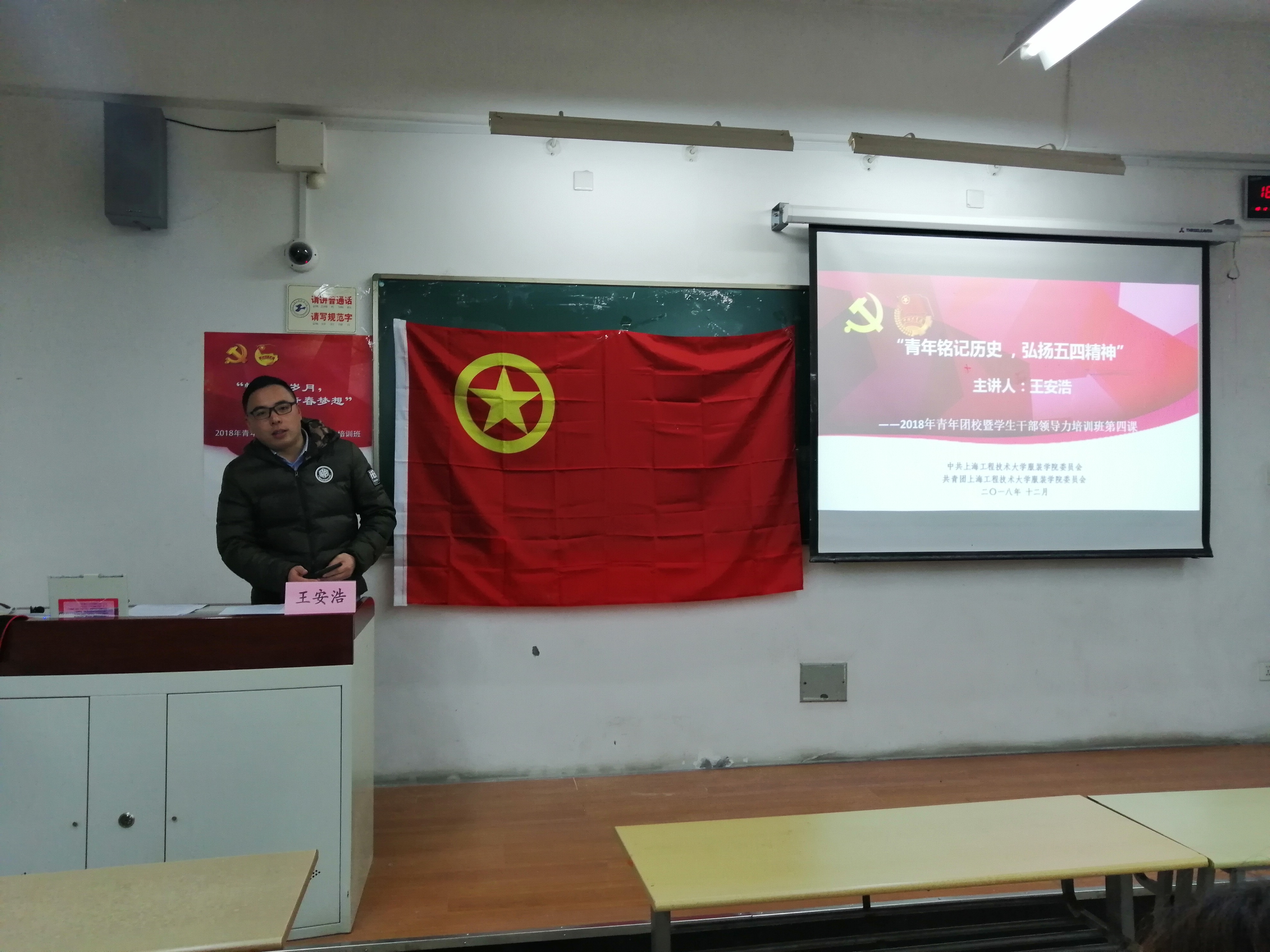 青年,是五四精神的继承者,青年兴则国家兴,青年强则国家强。服装学院团委为青年团学骨干能正确认识“五四运动”,在历史中汲取营养智慧和开拓前进的力量,进而弘扬五四精神。12月11日晚在教学楼E102,服装学院团校邀请学院学生第二党支部书记王安浩老师,为学生讲授“青年铭记历史,弘扬五四精神”。会议由服装学院团委副书记顾奇琦同学主持。