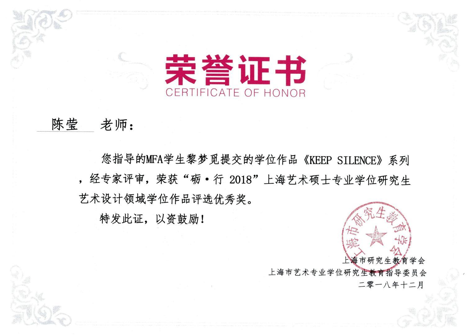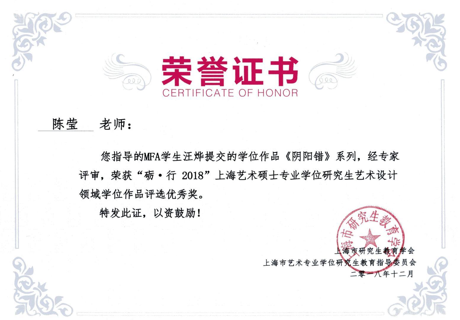 12月23日上午上海市艺术专业指导委员会在静安区文化馆尚·空间举行上海艺术硕士专业学位(MFA)研究生导师作品展暨作品集首发仪式;12月23日下午举办了国家创新战略背景下的MFA人才培养模式改革研讨会。服装学院胡越副院长出席了此次活动并获奖,陈莹教授指导的首届艺术专业硕士黎梦觅和汪烨获优秀奖。