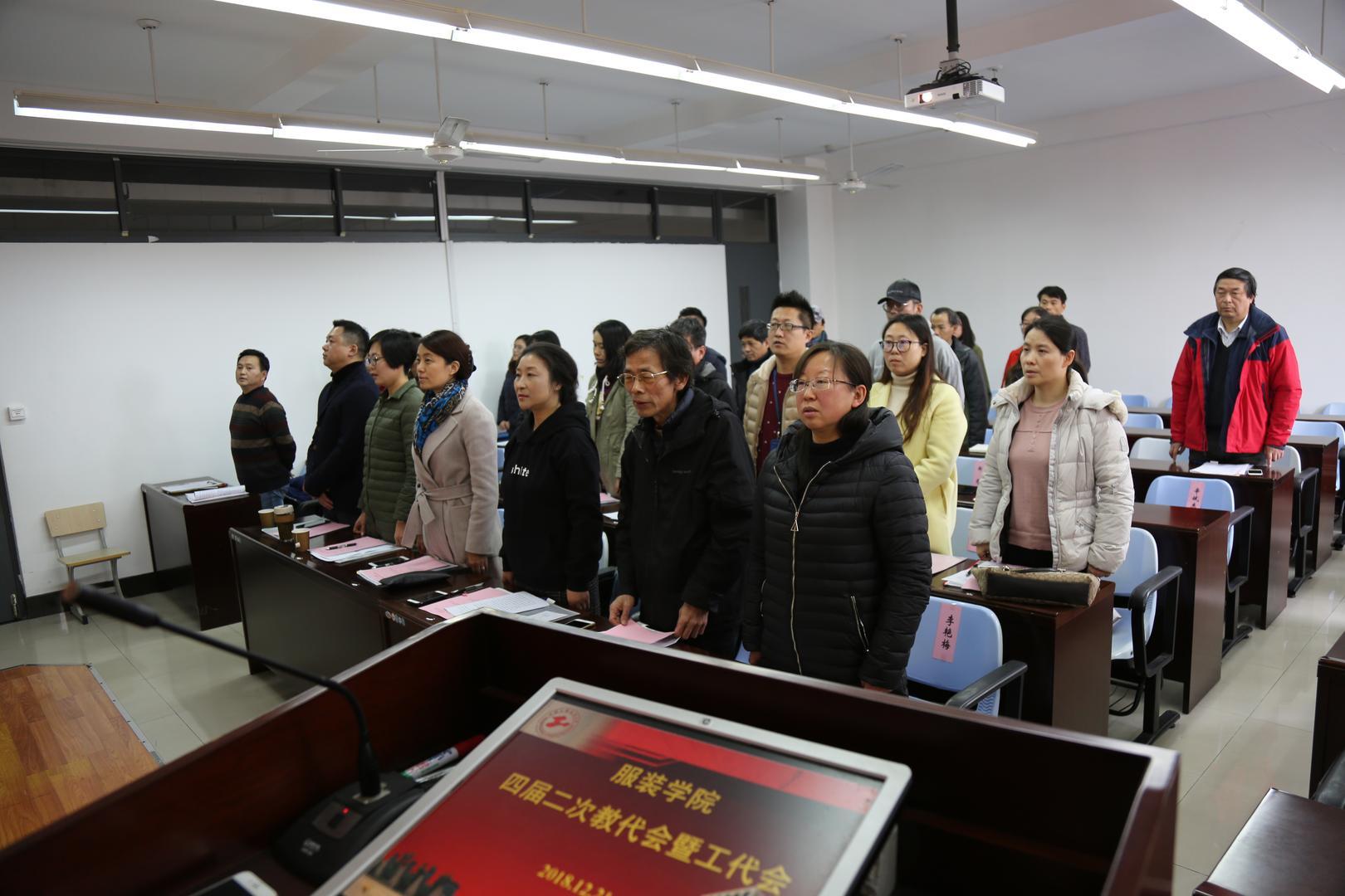 2018年12月21日服装学院四届二次教代会暨工代会在艺术楼C310举行,全体教代会暨工代会代表在庄严的国歌声中出席了本次会议。