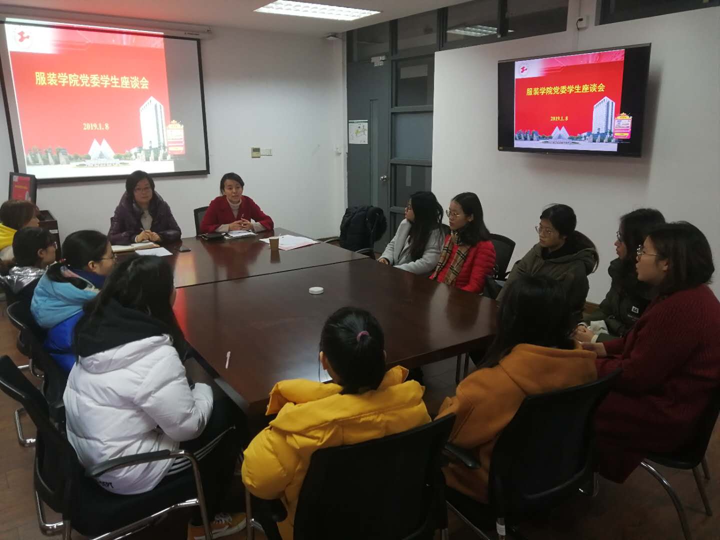 为开好服装学院党委2018年度党员领导干部民主生活会,深入查摆问题,1月8日下午,服装学院党委书记袁蓉主持召开2018年度党员领导干部民主生活会意见征询座谈会,广泛听取教师、学生代表的意见。座谈会邀请了各系室教师代表,高层次人才、教授、青年教师代表,部分支部书记、党代会代表,各专业年级学生代表等。
