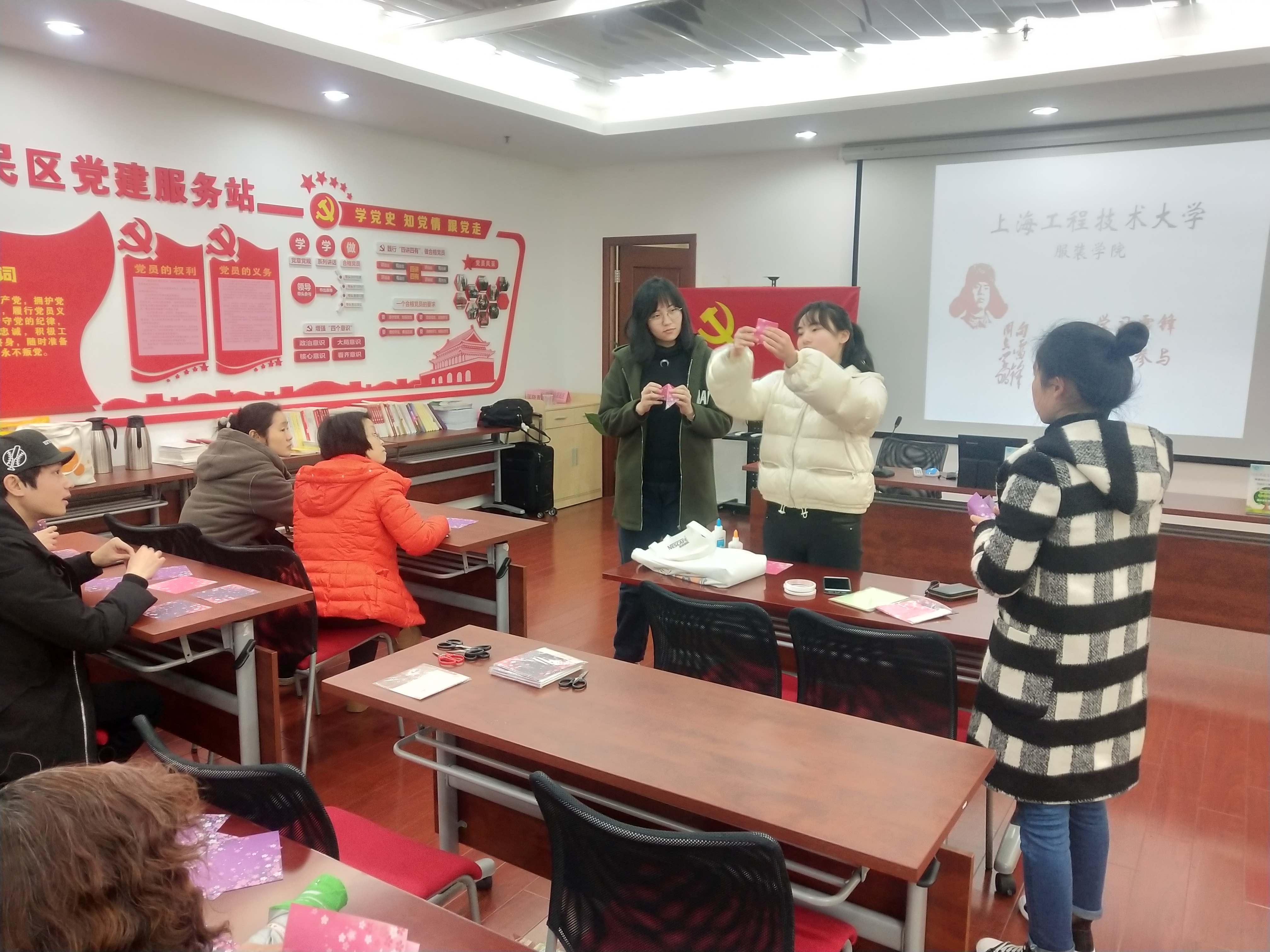 3月1日下午,服装学院学生第一、第二党支部学生党员以及团委科学商店学生代表一行来到学院科学商店服务点——佘山镇翠鑫苑社区举行“学雷锋,服务社区”手工制作活动,旨在将传统手工编织等技巧向社区居民普及。活动受到社区居民朋友的热烈欢迎。