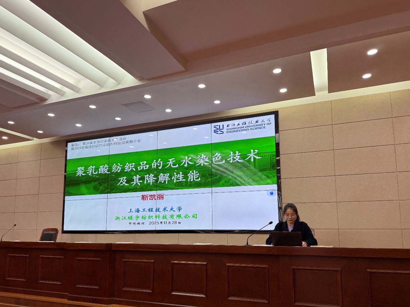 11月28日下午,纺织服装学院靳凯丽参加湖州市国家可持续发展议程创新示范区节能降碳减排技术供需对接会,并以“聚乳酸纺织品的无水染色技术及其降解性能”为主题进行主旨报告。