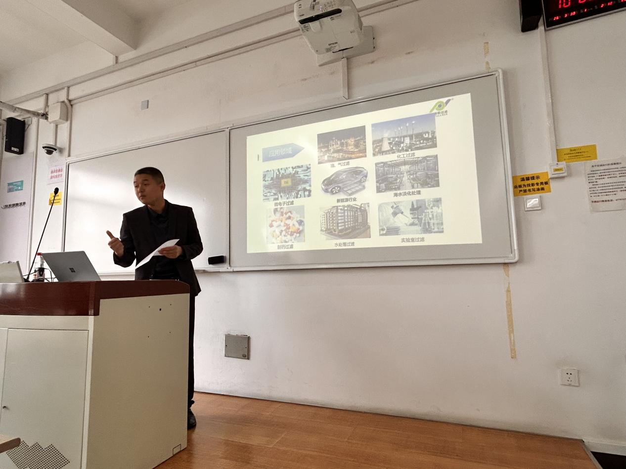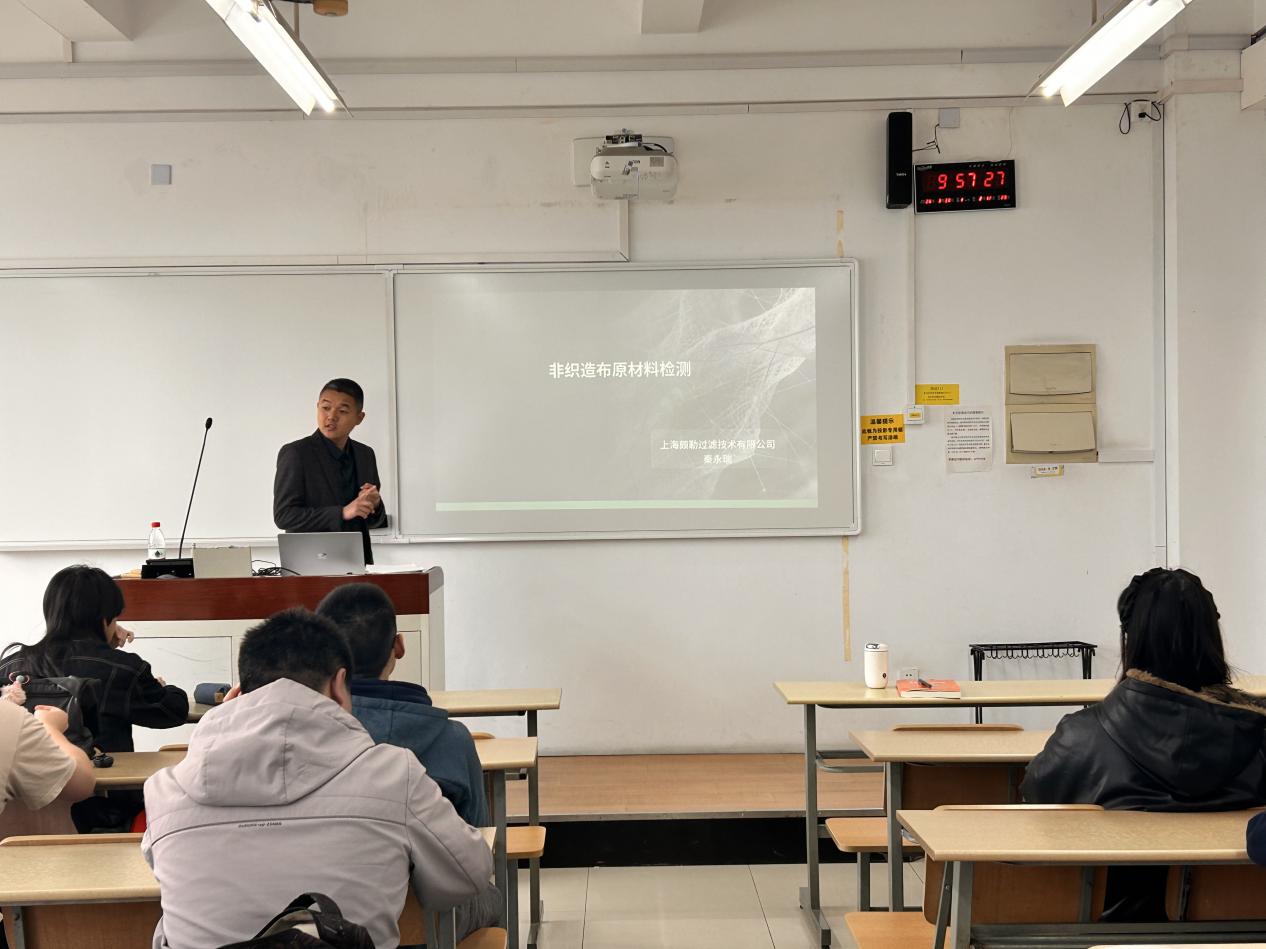 2026年3月30日,上海工程技术大学纺织服装学院特邀校企合作单位--上海颇勒过滤技术有限公司总经理秦永瑞走进校园,为非织造材料与工程专业大三同学们带来了一场题为“非织造布原材料检测”的深度专题讲座。