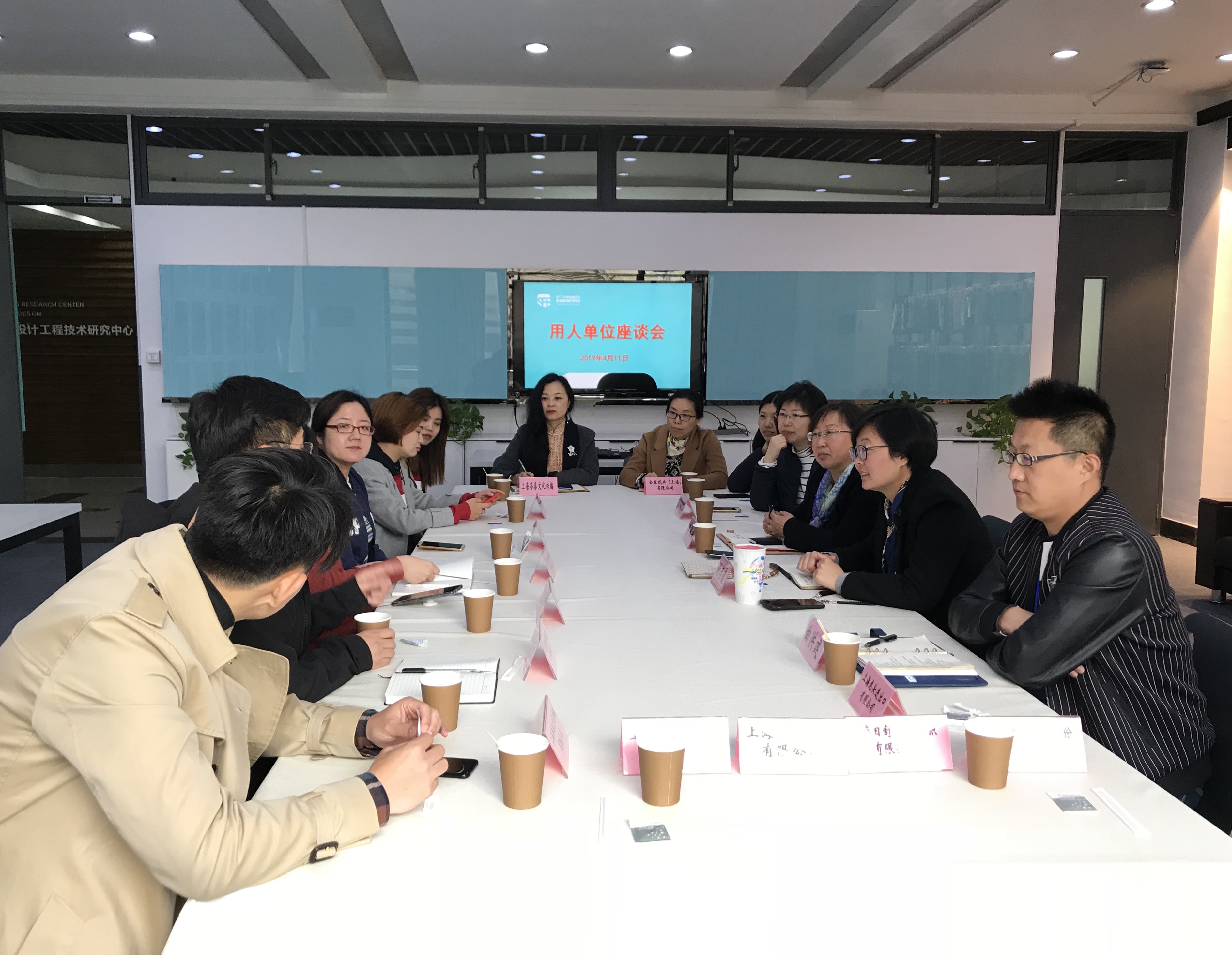 4月11日中午,服装学院在艺术楼C210召开用人单位座谈会。服装学院党委副书记谢志霞、副院长李艳梅、服装设计与工程系系主任曲洪健、产学合作辅导员沈智莉,与数十家用人单位代表,共同参与座谈会。会议由服装学院党委副书记谢志霞主持。