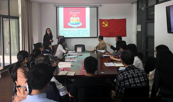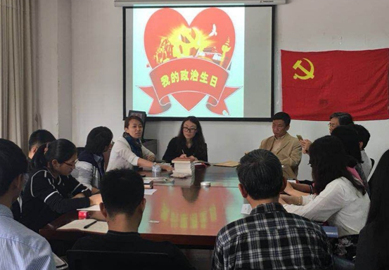 根据校党委组织部关于《推进党员同志过政治生日的意见》,在服装学院党委指导下,4月19日,纺织工程党支部主题党日,恰逢支部成员入党三十一周年纪念日,纺织工程党支部于当天下午2:30在艺术楼A218围绕“五个一”开展了“不忘政治生日,牢记党员使命”的主题党日活动。通过“讲述一个入党故事”、“送上一张生日贺卡”、“献上一本学习读物”、“重温一段铮铮誓言”、“畅谈一次体会感悟”的形式为三位4、5月份入党的党员教师和三位即将离开“娘家”的党员同学举办了一场集体政治生日仪式。