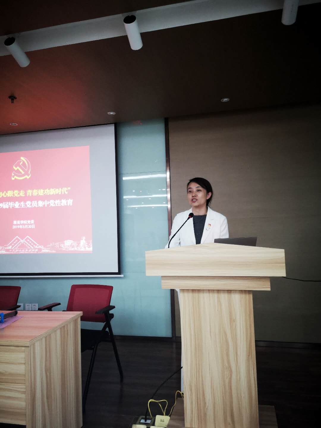会上,袁蓉书记对专程为我们授课的上海关工委讲师团、松江老兵讲师团谢鲁淮老师及老兵们和松江党建服务中心给予的大力支持表示衷心的感谢。她说今天我们在这里重温这段历史,致敬1949,开启2019,不仅是要铭记革命先烈用生命捍卫了祖国的稳定和繁荣,更重要的是要继承和发扬他们的革命精神。对毕业生党员提出了三点要求,一是加强政治意识,铭记历史、不忘初心,不断提高党性修养,树牢“四个意识”,坚决做到“两个维护”;二是时刻铭记党员身份,明确人生方向,将个人理想与国家建设发展紧密结合起来,将个人梦与上海梦、中国梦相结合起来,做好人生规划,坚定“四个自信”;三是要牢记工程大人的身份责任,坚守“勤奋、求是、创新、奉献”的校训,秉承学校的优良传统,不断积极进取,追求卓越,今天工程大培养了优秀的党员学生们,明天将以你们为荣,记得常回家看看!