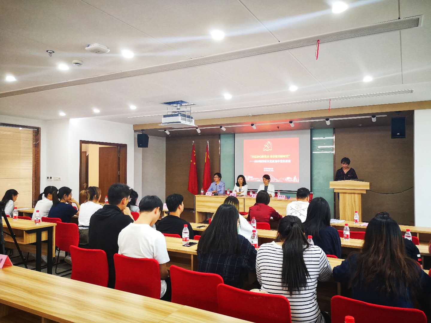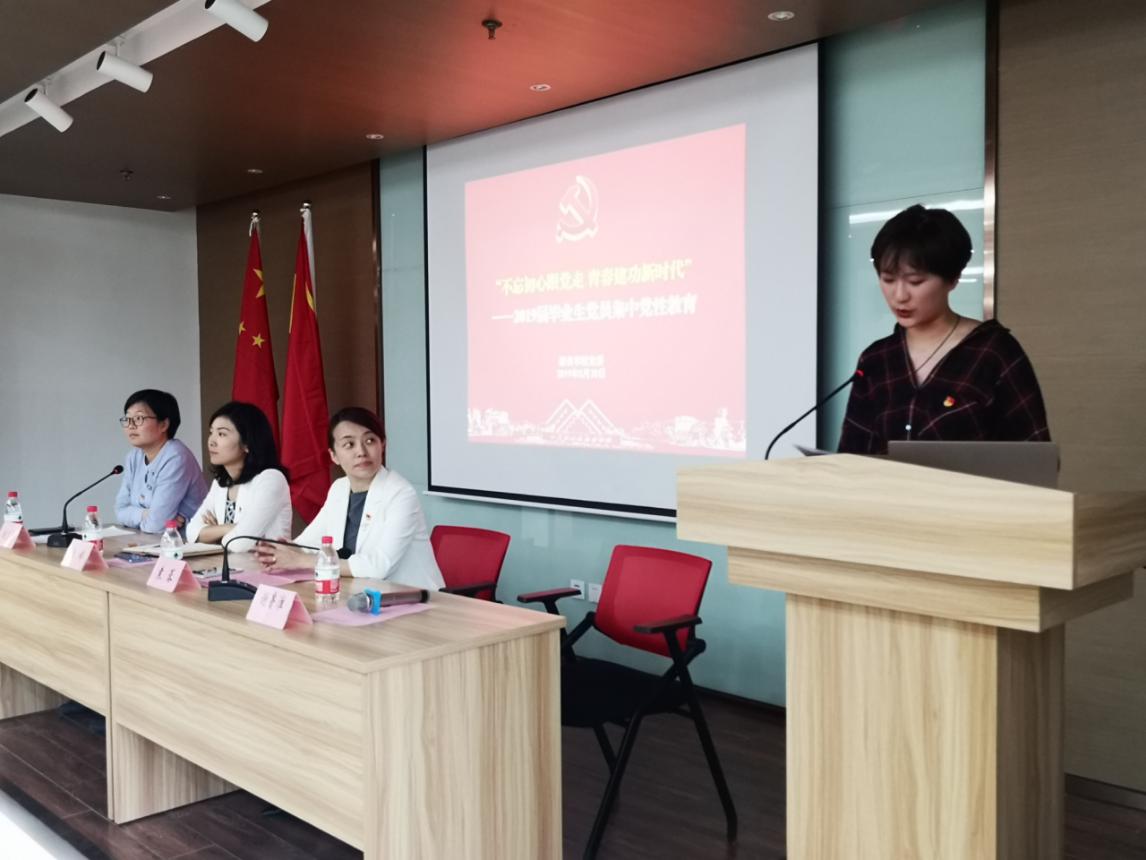服装学院党委为进一步加强毕业生党员党性教育,于5月30日下午在松江党建服务中心开展以“不忘初心跟党走 青春建功新时代”为主题的2019届毕业生党员主题党日活动。通过纪念上海解放70周年“七个一”党员系列教育,即一次主题党日、一堂老兵党课、一封政治生日卡,一篇党员誓词、一场校友对话、一句毕业感悟、一声谆谆嘱咐。出席会议的有服装学院党委书记袁蓉、副书记谢志霞、组织员苌欣、学生党支部书记、全体毕业生党员,服装学院2005级校友、现松江党建服务中心主任陆婷也出席了会议。此外引来上海华侨城(欢乐谷)、泰晤士居民区、邮政公司、上海银行等党员同志们40余人全程观摩,校区互动、校地联动,推动特色党建。会议由服装学院党委副书记谢志霞主持。