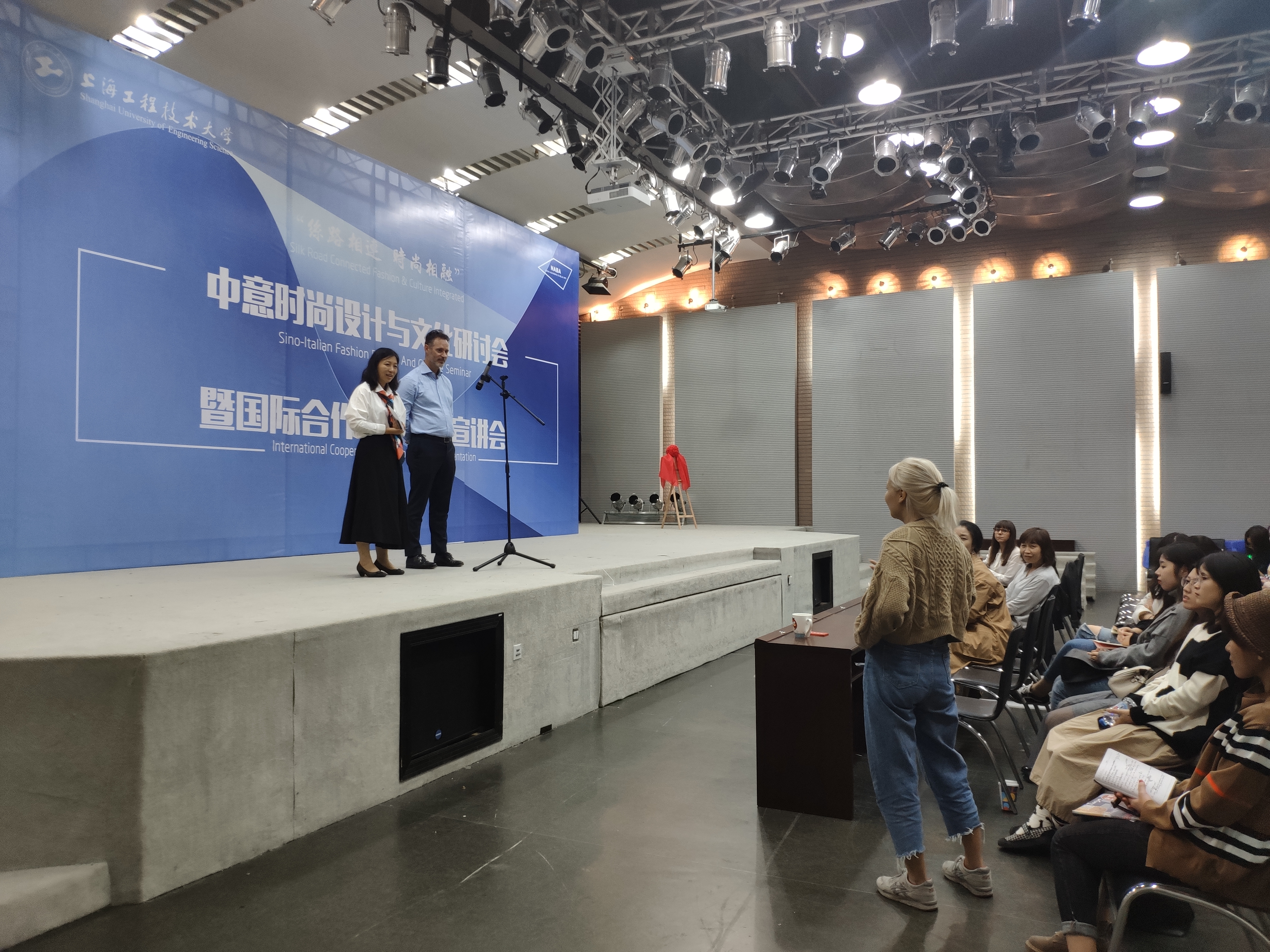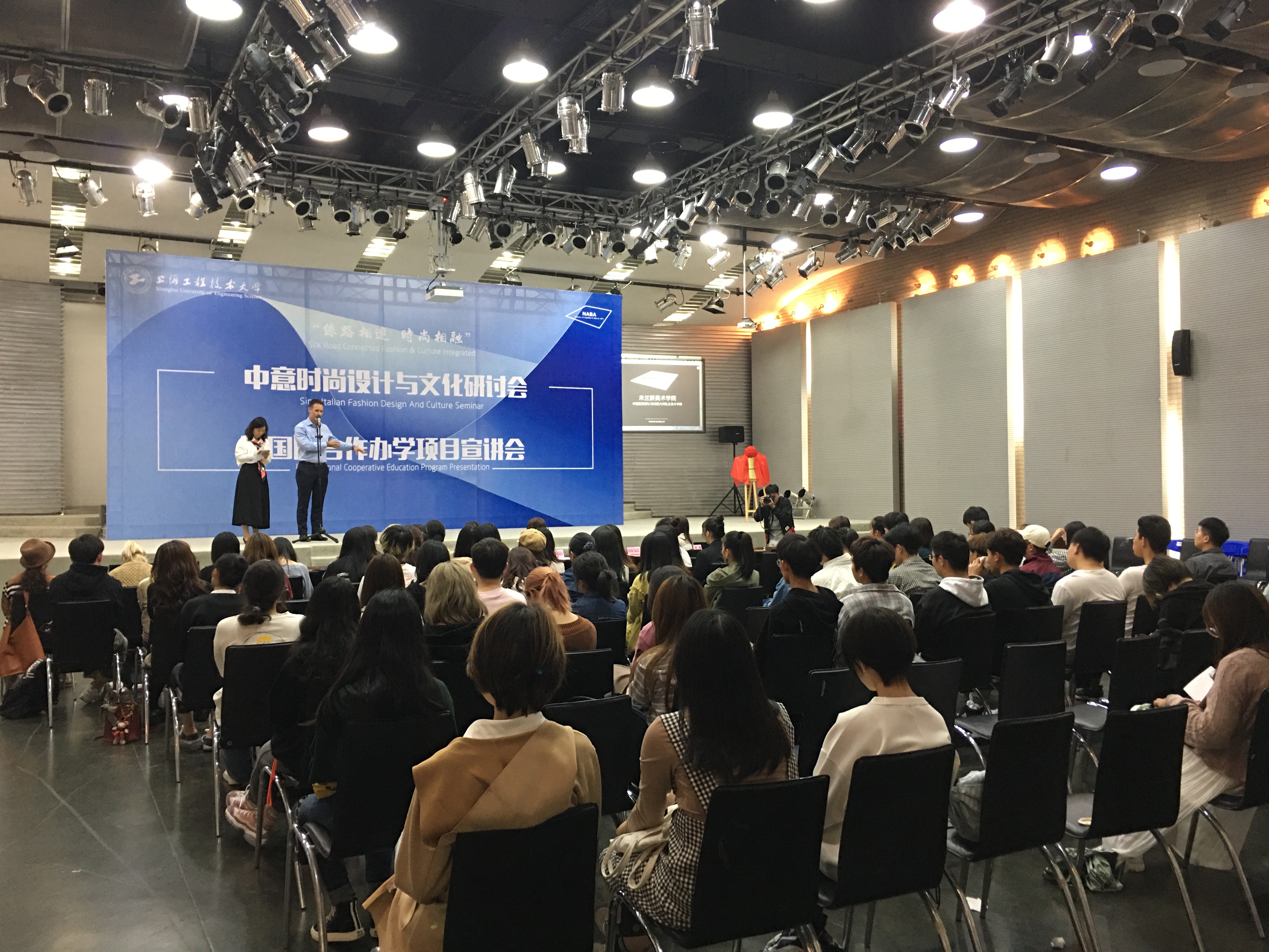 意大利米兰新美术学院董事Donato Medici先生、钱欣女士,服装学院院长谢红,国际交流处副处长张宇清,服装学院副院长李艳梅以及服装学院研究生一年级、本科三年级学生参加了此次宣讲会。