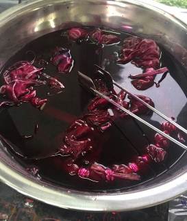 把扎好的丝巾放到染缸中进行染色,染好颜色后取出洗净、熨烫烘干,就得到我们想要的成品。大功告成。