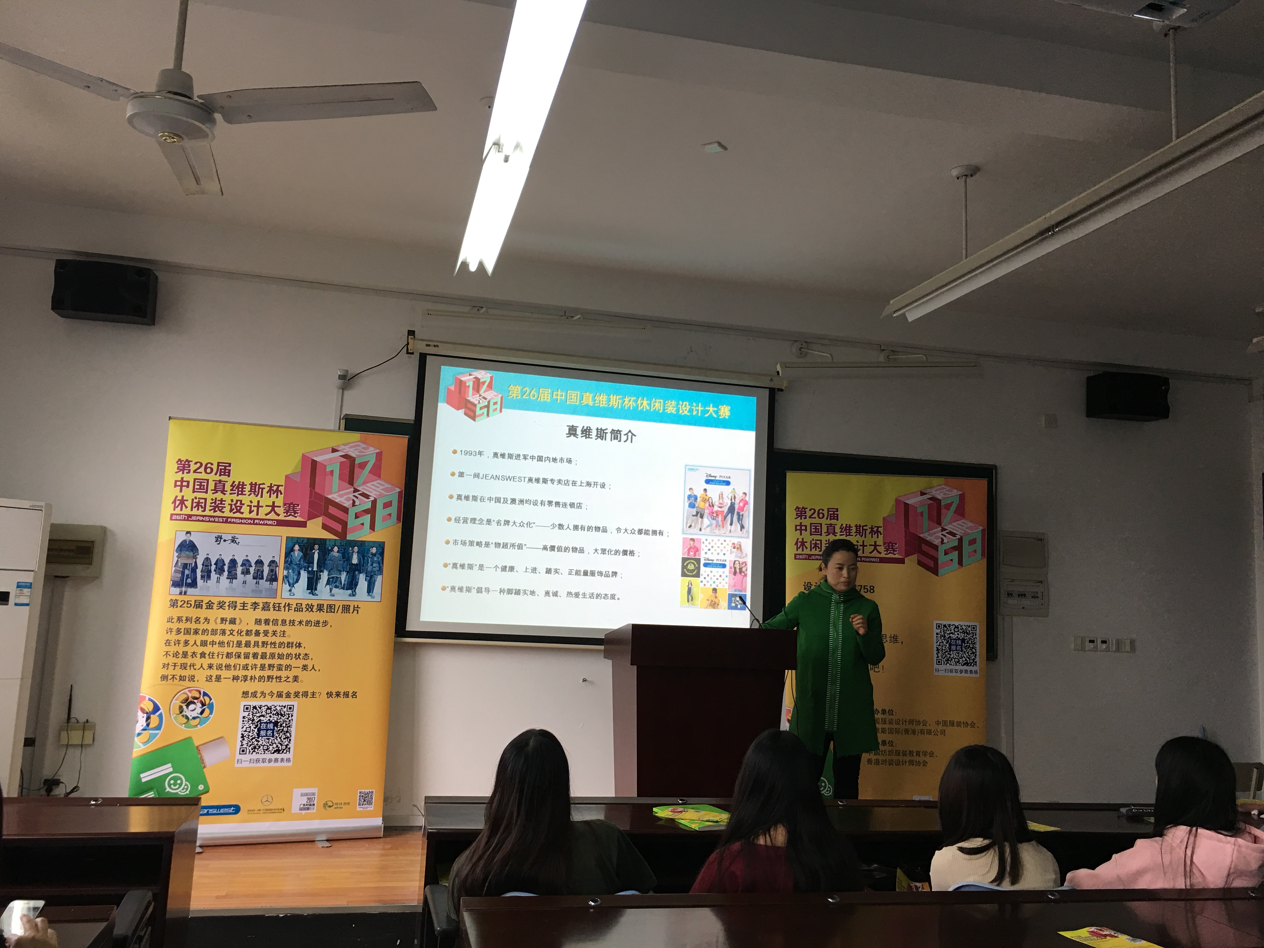 5月3日下午,服装学院在艺术楼C310举办第二十六届“中国真维斯杯”休闲装设计大赛宣讲会,学院邀请主办方真维斯国际(香港)有限公司推广部助理总监蒋灵为宣讲活动做现场指导。