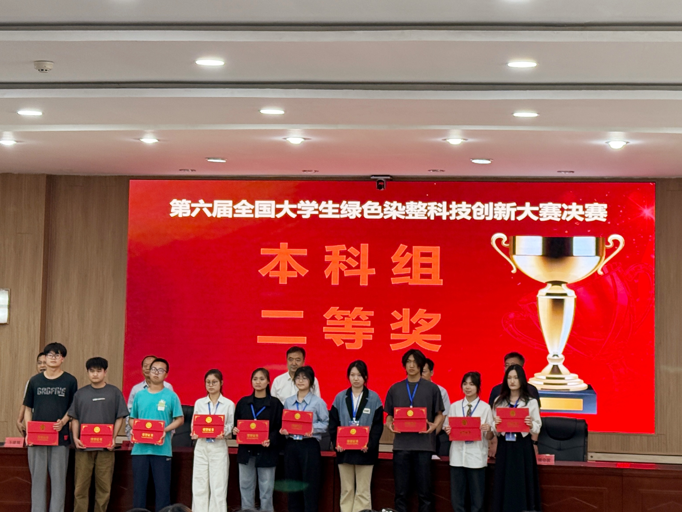 As a concrete initiative to implement the guiding principles of the 20th CPC National Congress on “promoting green development and fostering harmony between humanity and nature,” the National College Students' Green Dyeing and Finishing Technology Innovation Competition has become a vital platform for advancing textile discipline development and stimulating youthful innovation. The sixth edition, themed “Smart Dyeing and Finishing, Green Future,” attracted participation from numerous universities nationwide since its launch in April. Students from our university's School of Textiles and Fashion submitted a total of 15 undergraduate entries and 5 graduate entries. Following an online preliminary evaluation by the expert panel and a rigorous on-site “presentation + defense” round, our university secured 4 second prizes and 2 third prizes in the undergraduate category, along with 1 second prize and 1 third prize in the graduate category.